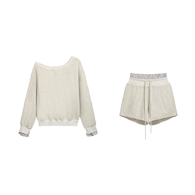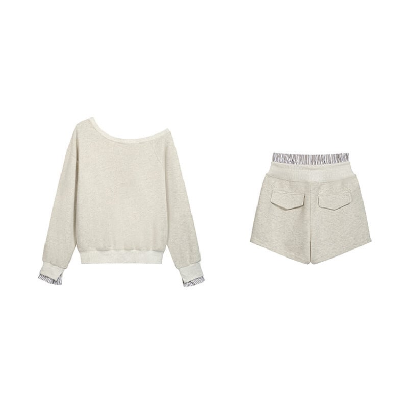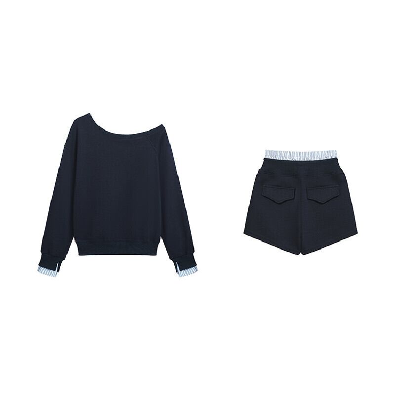 ✿2025秋新作✿セットアップ パーカー+ショートパンツ ストライプ柄 オフショルダー ベージュ ダークブルー S M L