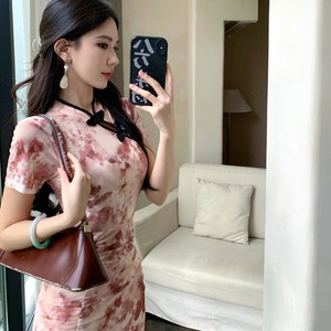 ワンピース チャイナ風 強い印象 花柄 女っぽさが漂う S M L