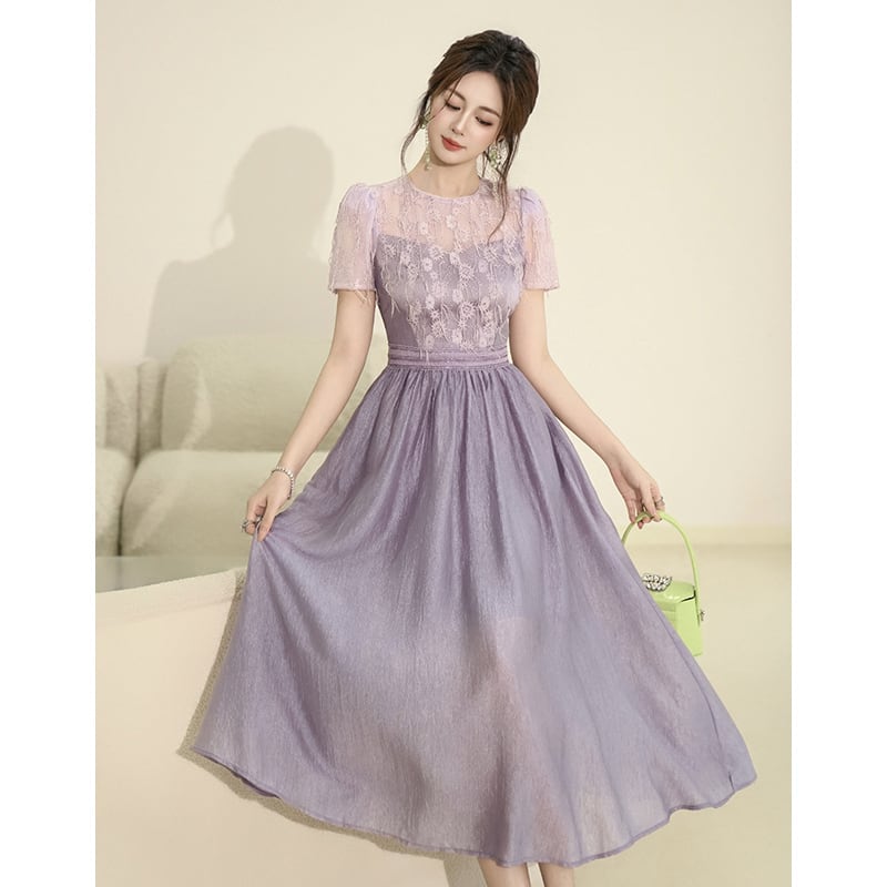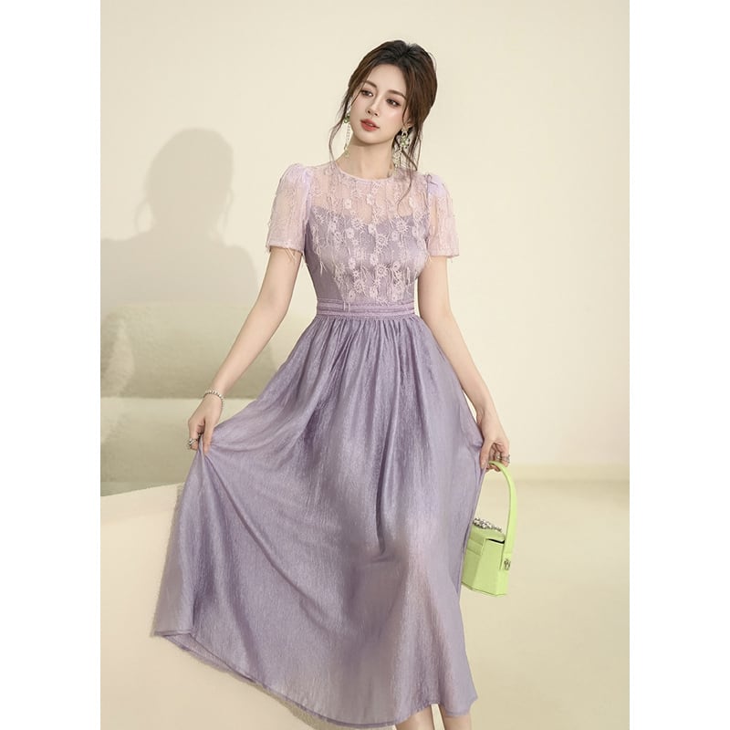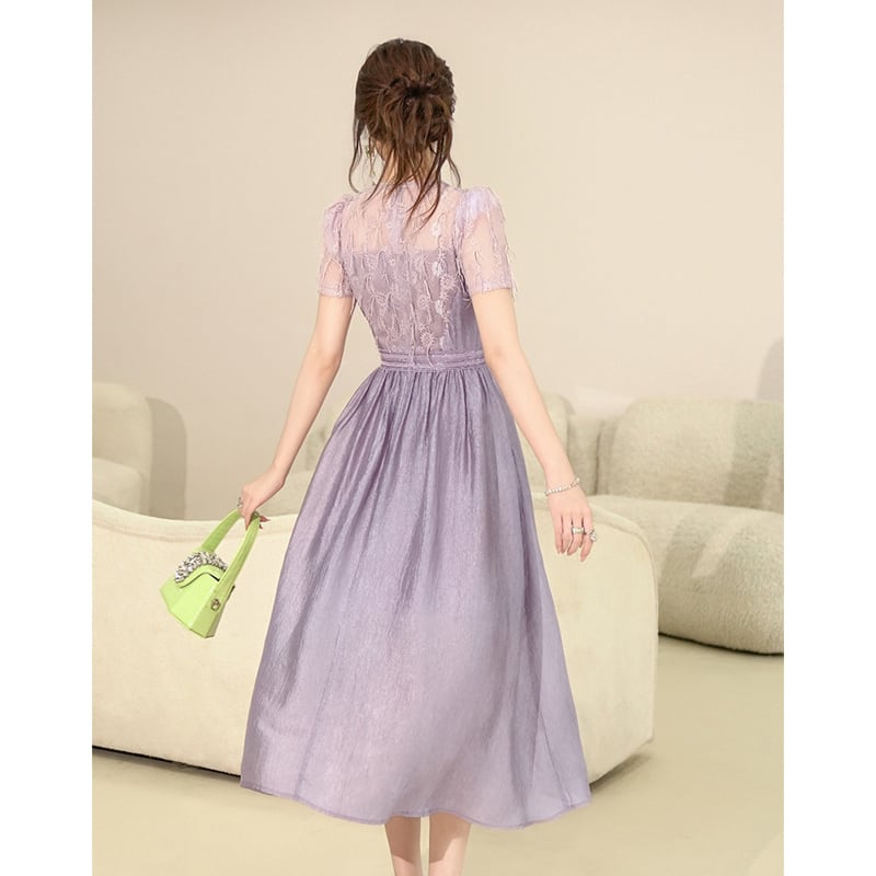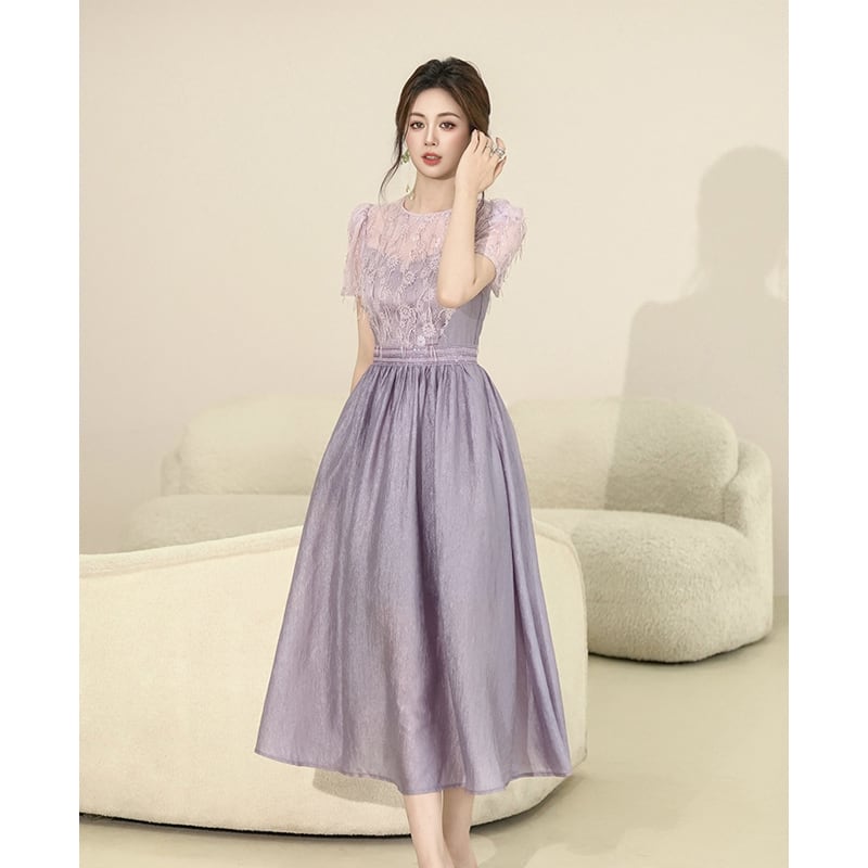 【夕暮薔薇シリーズ】ワンピース レース ハイウエスト 気質溢れる パープル S M L XL