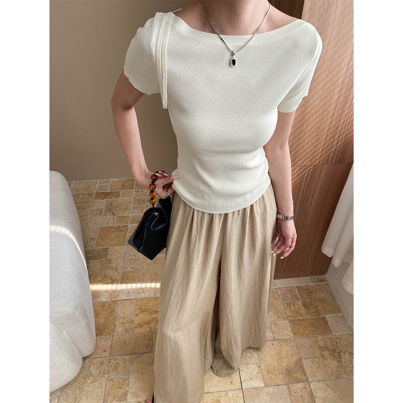 ボトムス パンツ ワイドな裾 ストレートシルエット リネン レープ感 ライトブラウン S M L
