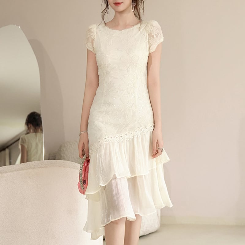 【夕暮薔薇シリーズ】ワンピース エレガント デート 不規則 スウィート ベージュ S M L XL