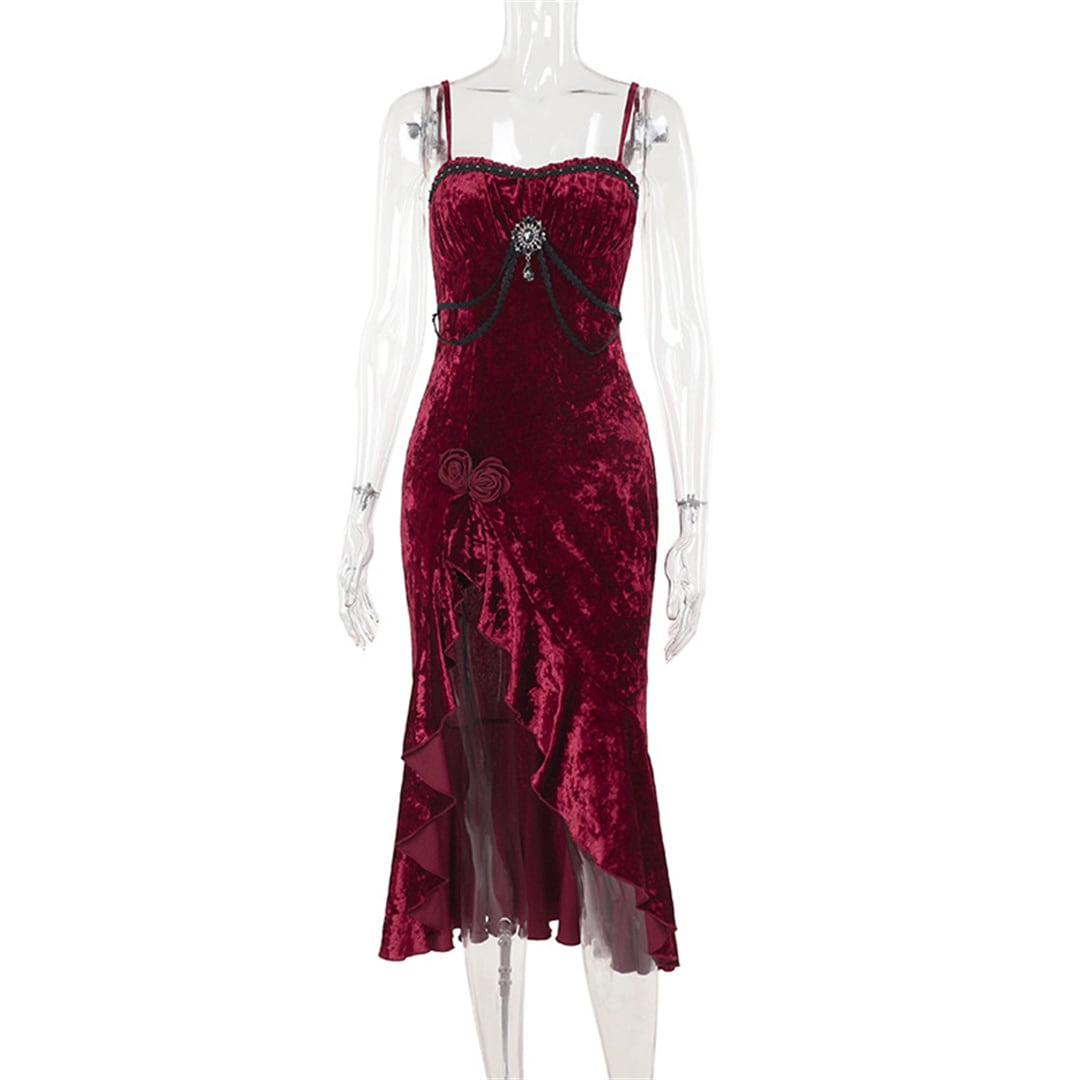 ワンピース ゴシック スリット セクシー オープンショルダー レッド S M L