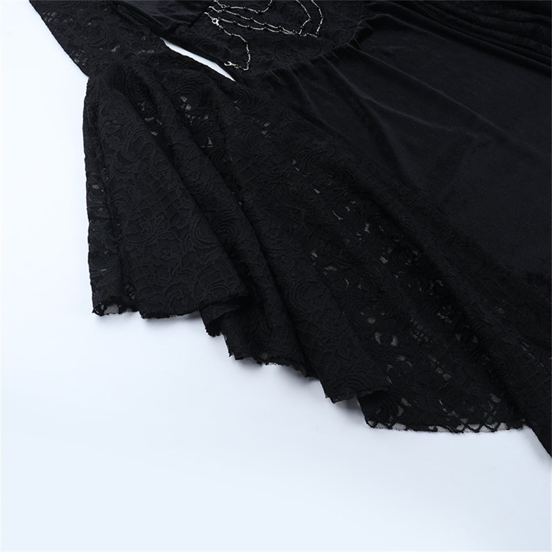 ワンピース ゴシック セクシー 無地 切り替え レース ブラック S M L
