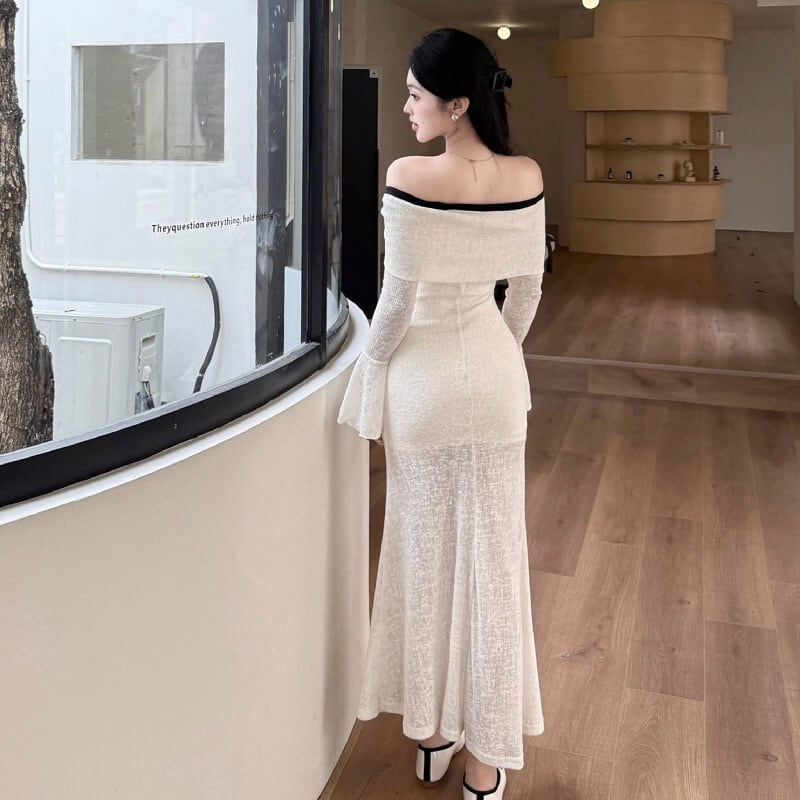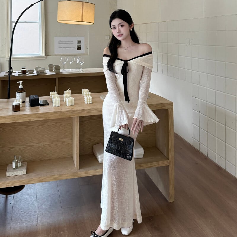 ワンピース ボートネックデザイン スピーカースリーブ 気質アップ S M L