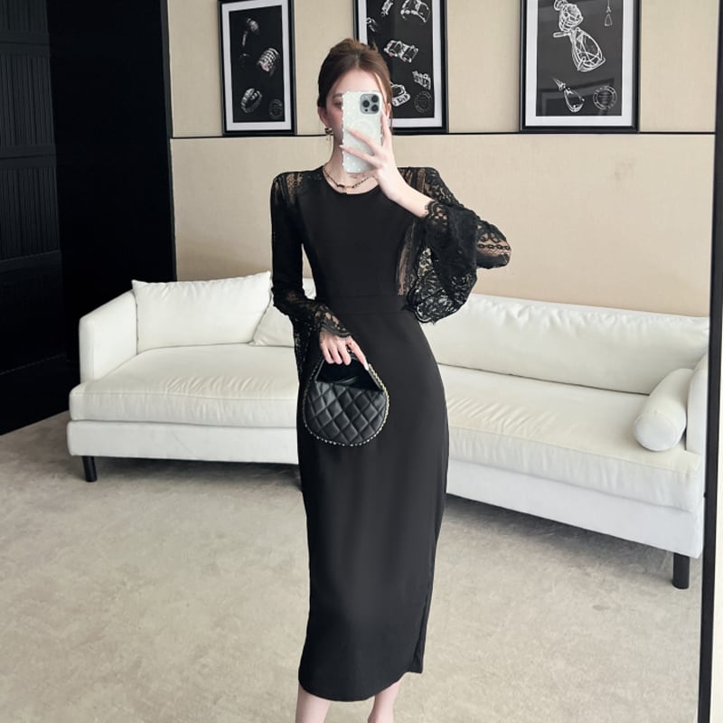 【CHERRYシリーズ】ワンピース レース スピーカースリーブ ブラック S M L XL