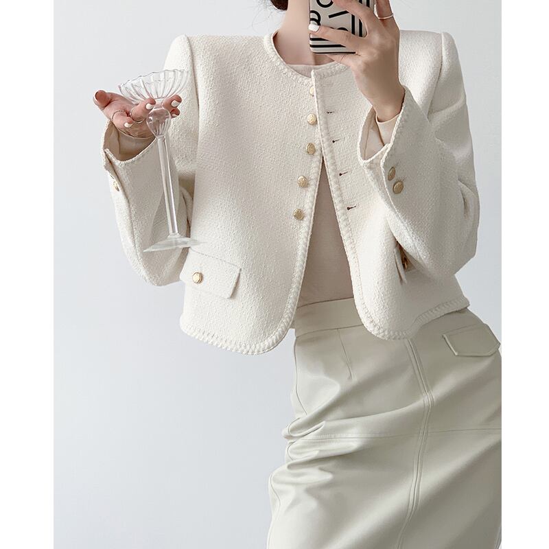 アウター ジャケット シングルブレスト 無地 通勤 長袖 ショート丈 ホワイト S M L