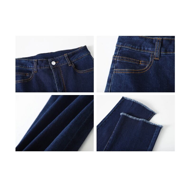 ボトムス デニムパンツ フリンジ加工 ワイドレッグ ダークブルー S M L XL
