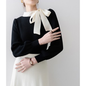 トップス ニット リボン エレガント 長袖 気質溢れる ブラック S M L