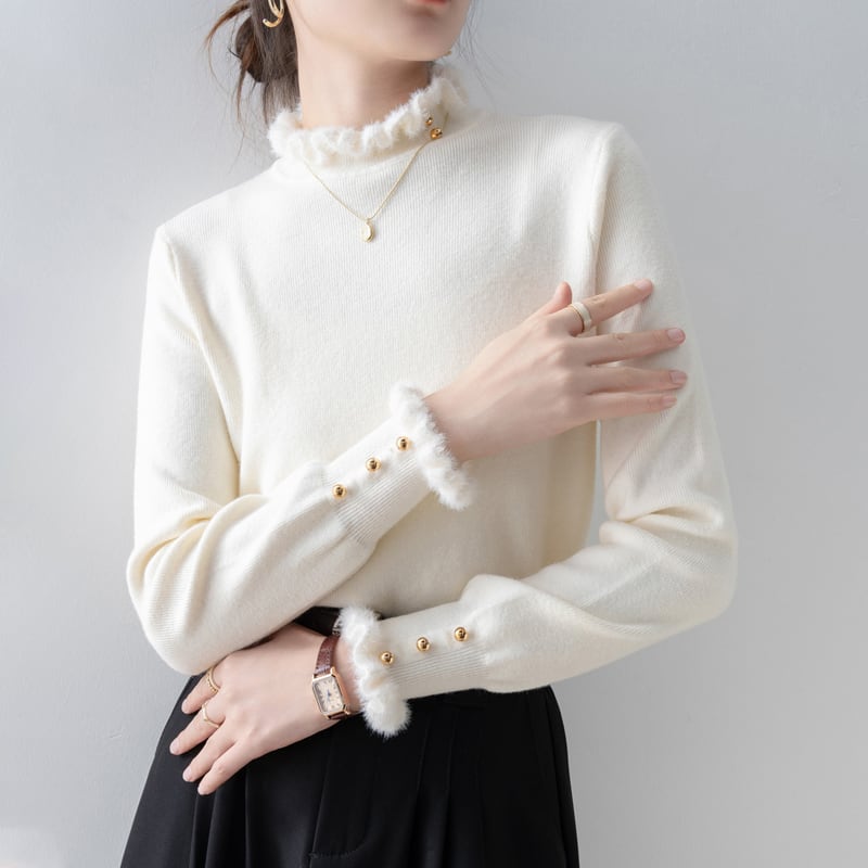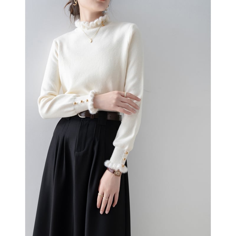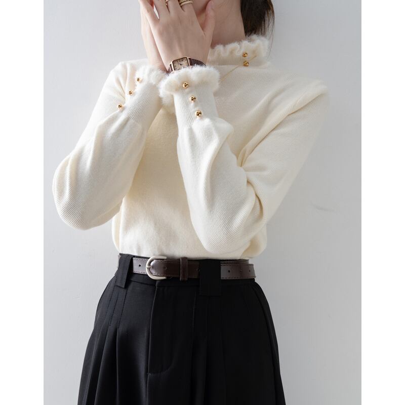 トップス ニット無地 エレガント タートルネック 長袖 ベージュ S M L