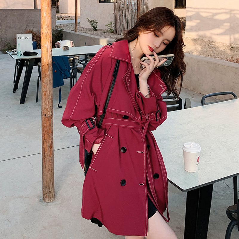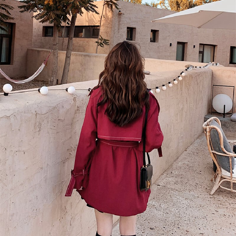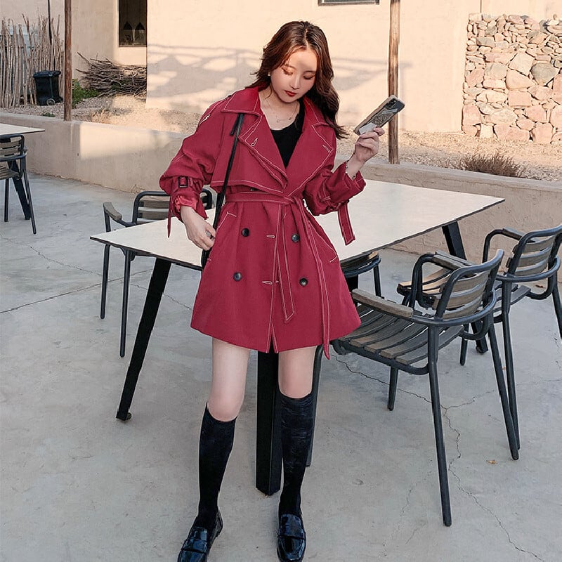 アウター トレンチコート ダブルブレスト 長袖 ワインレッド S M L XL