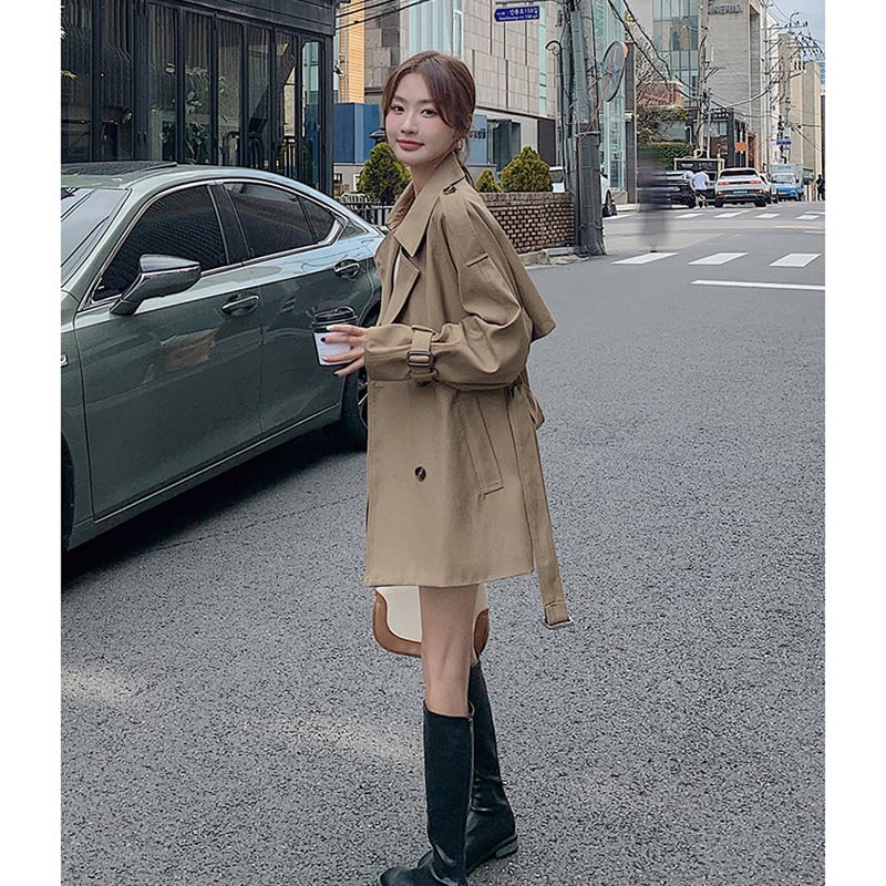 アウター トレンチコート 定番 長袖 無地 ダークベージュ S M L XL