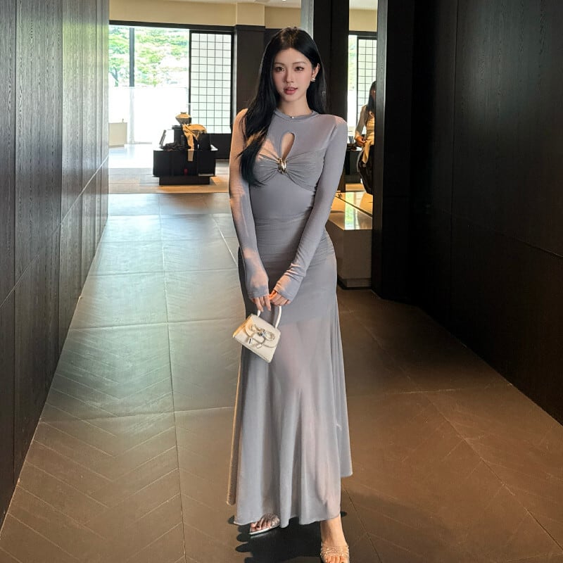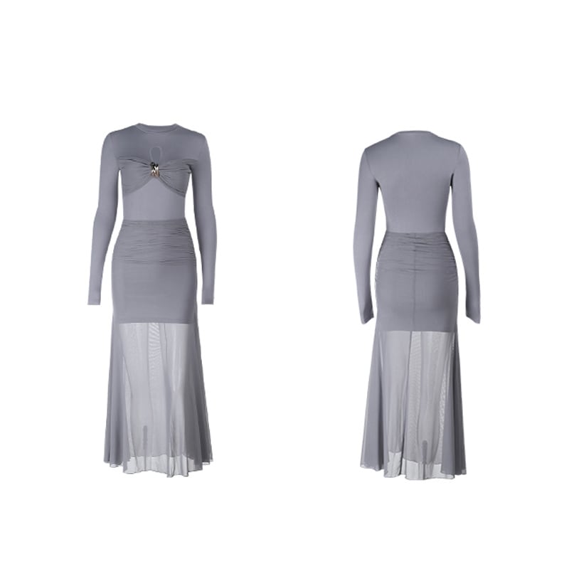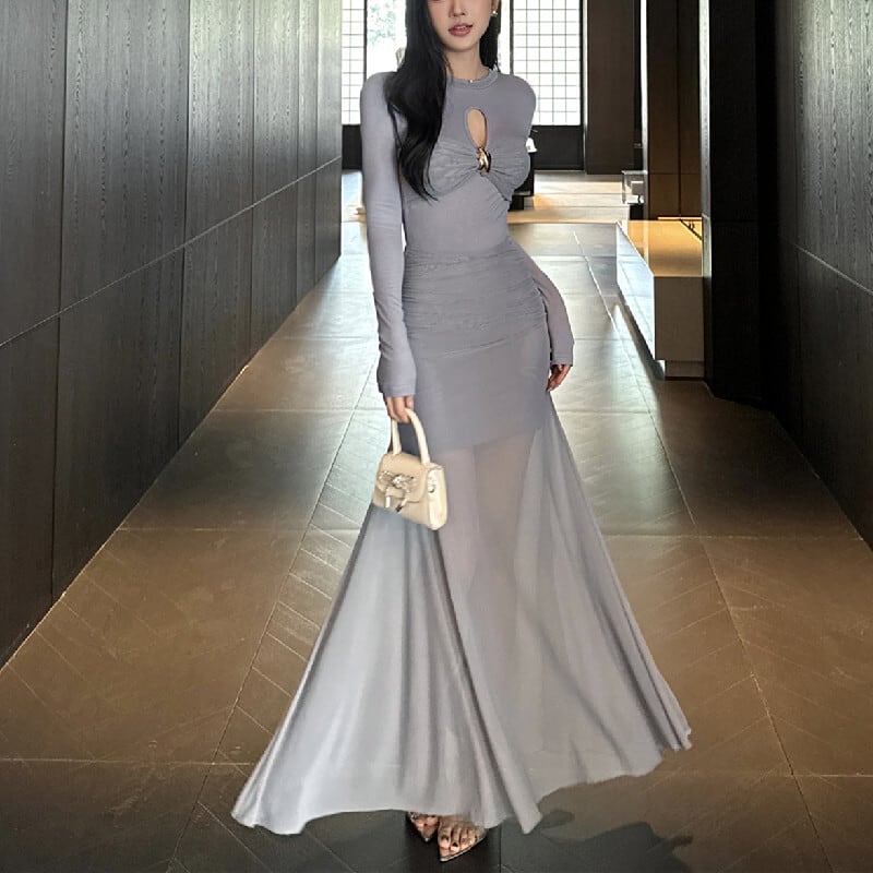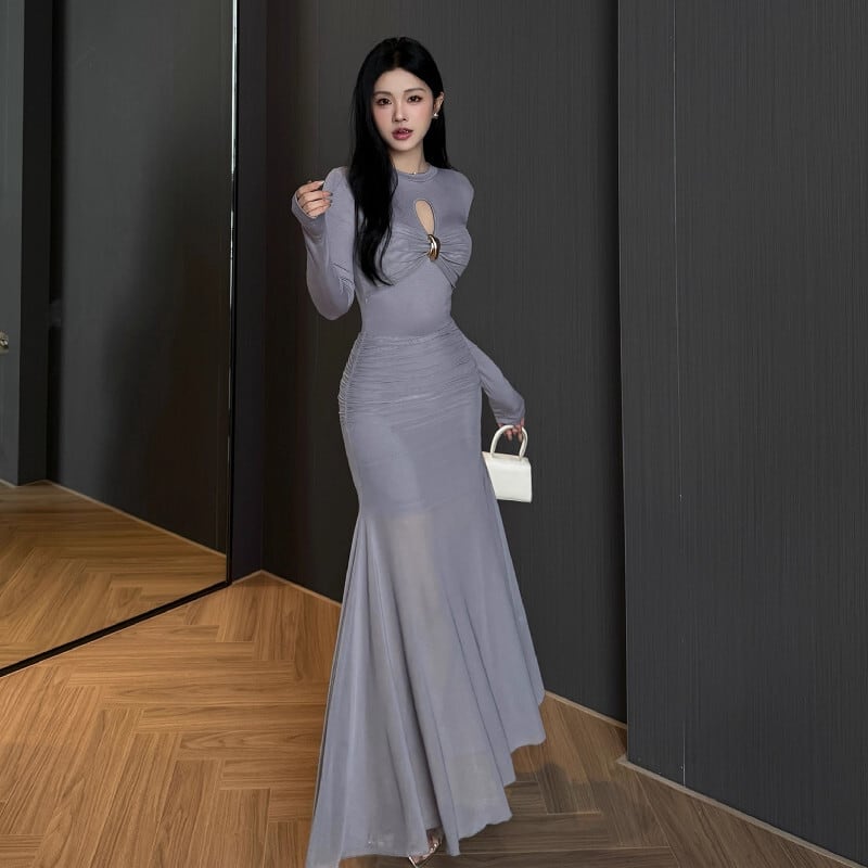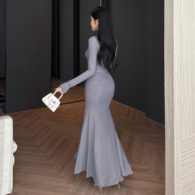 ロングワンピース セクシー デザイン感 フィッシュテール グレー S M L