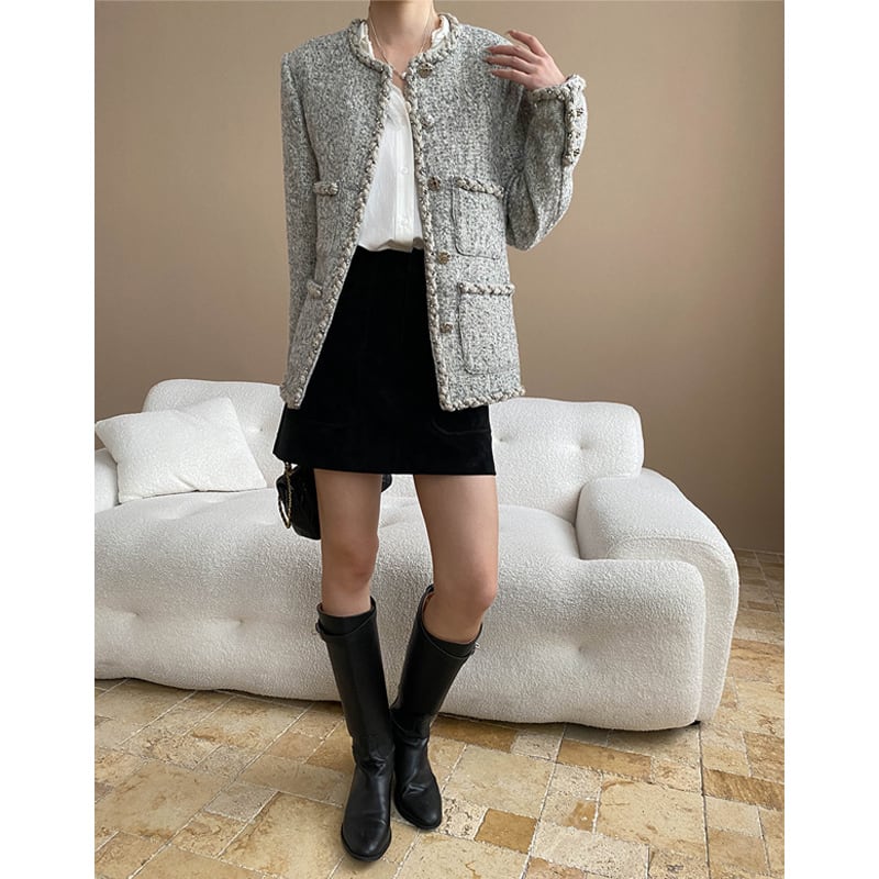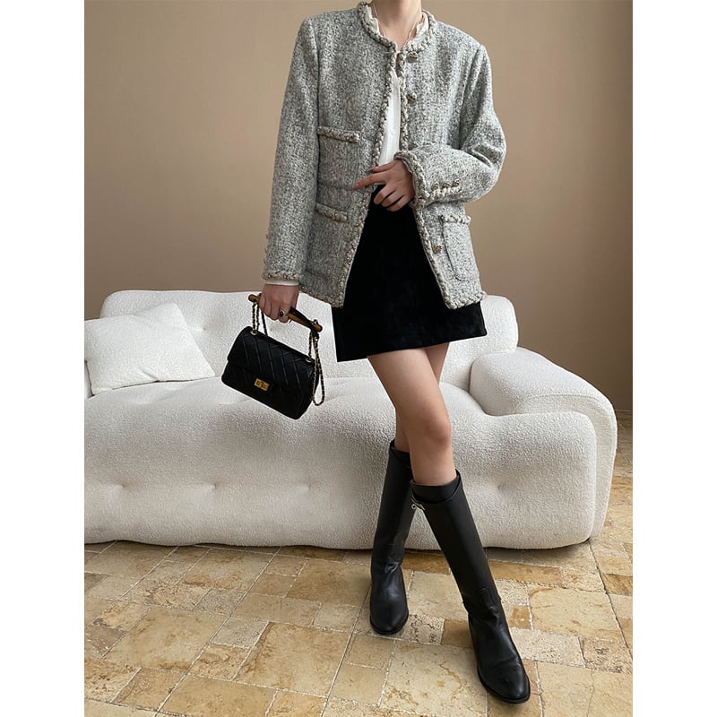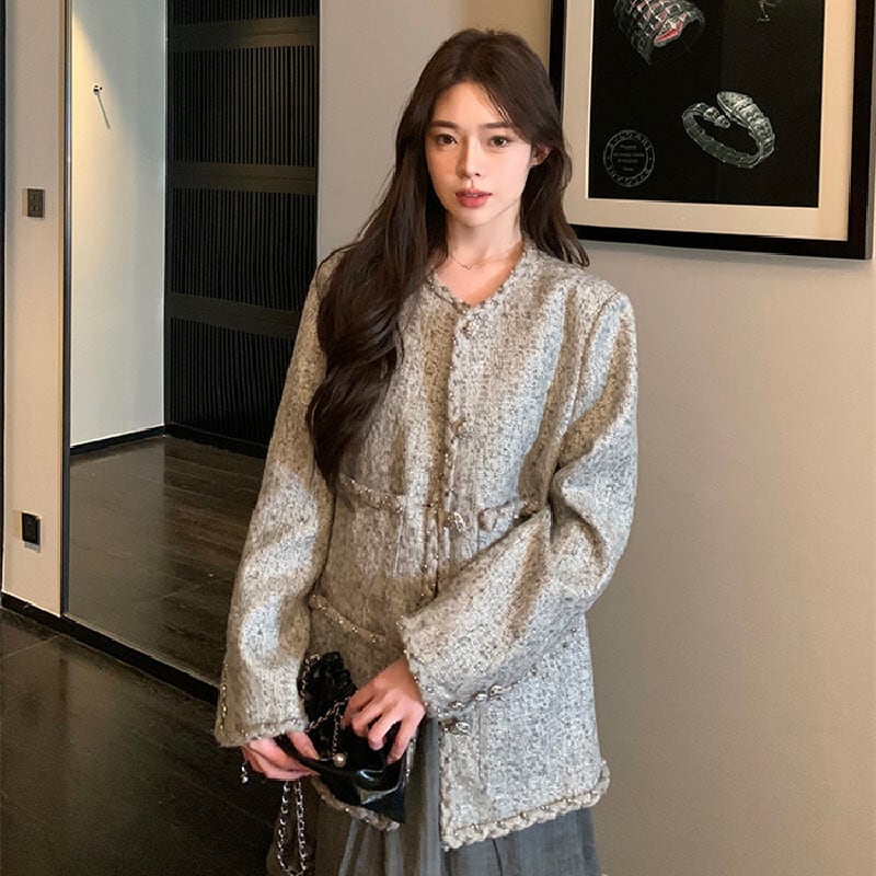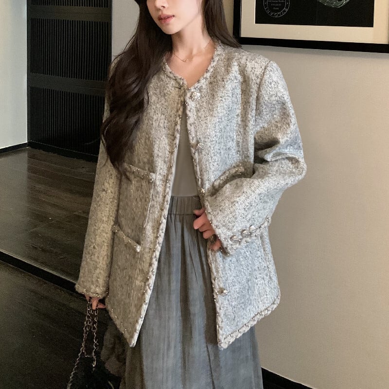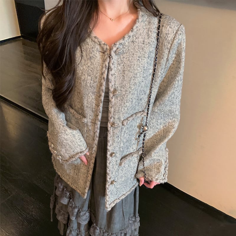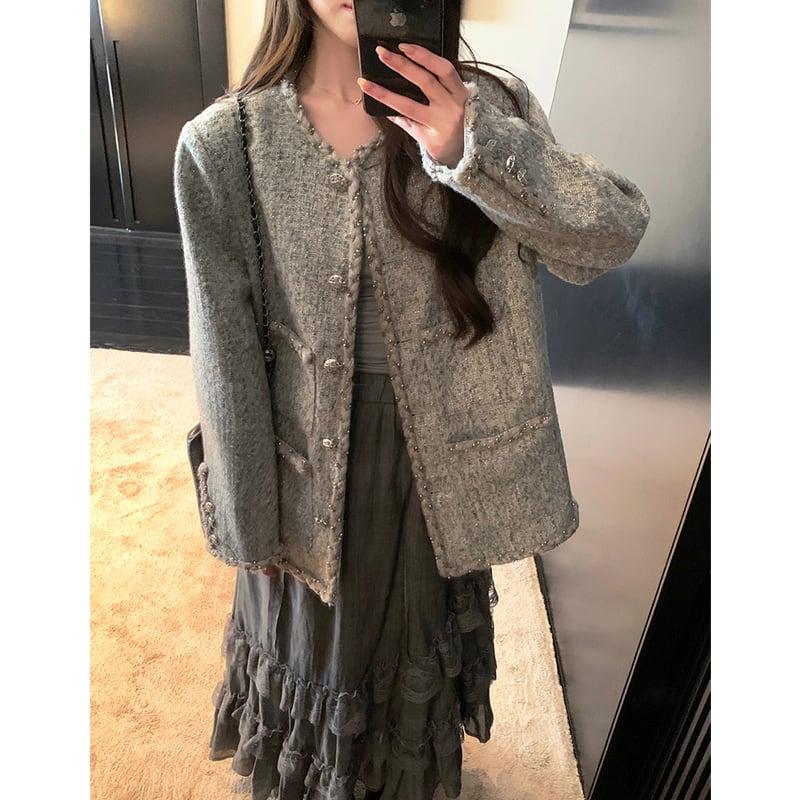 アウター ジャケット ツイード 長袖 目を奪われる グレー S M L