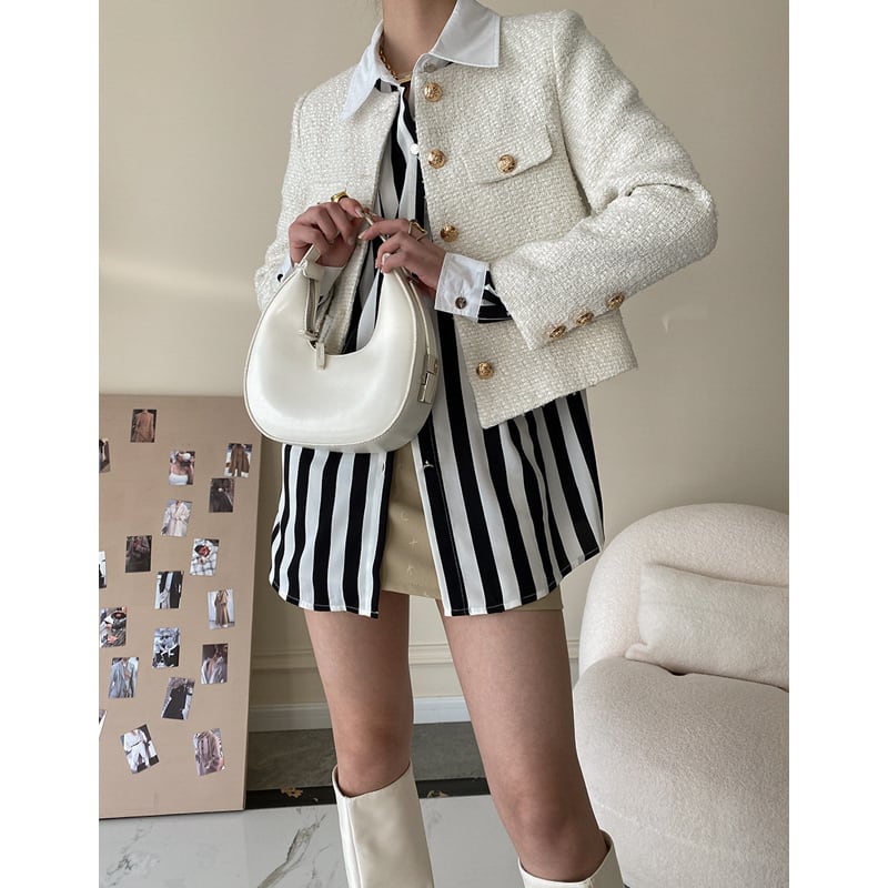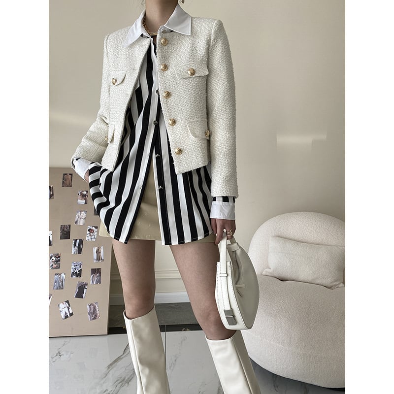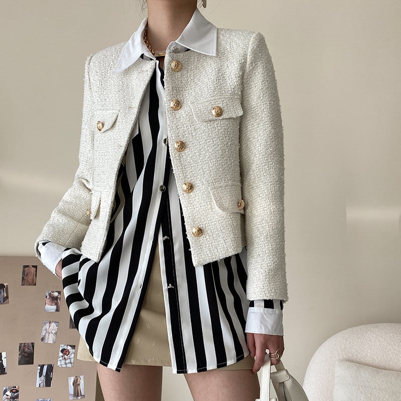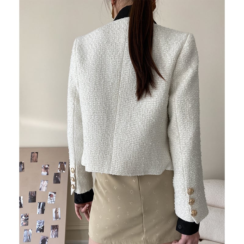アウター ジャケット ツイード 無地 OL/フォーマル 長袖 ホワイト S M L