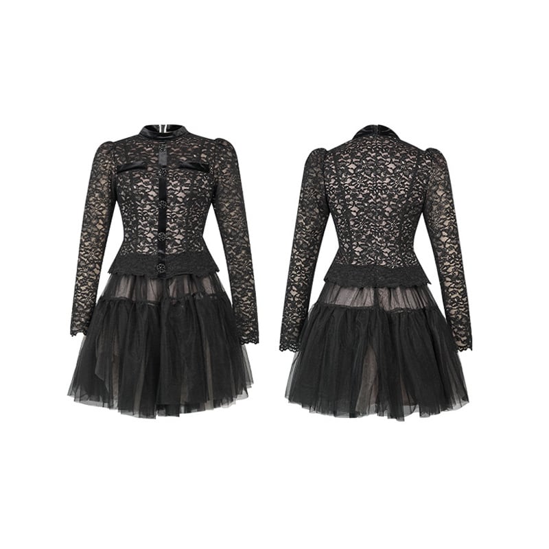 【夕暮薔薇シリーズ】ワンピース レース メッシュ 長袖 ブラック S M L XL
