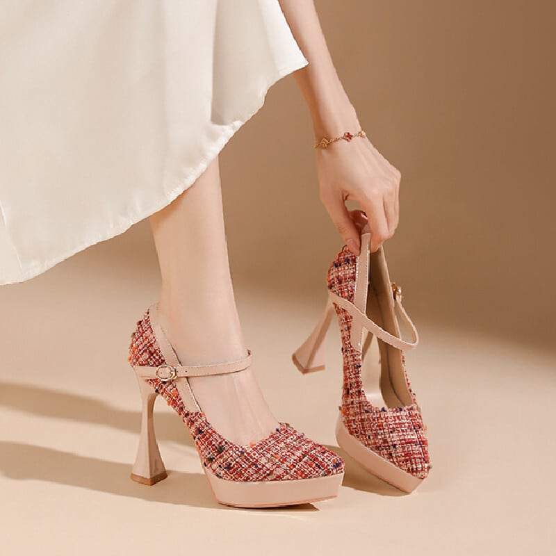 シューズ パンプス 2色展開 ツイード 切り替え ブラック ピンク 12CM