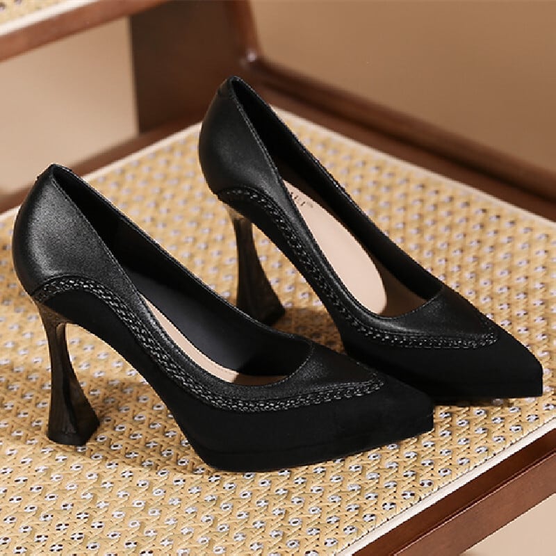 シューズ パンプス 2色展開 無地 切り替え ブラック ブラウン 10CM