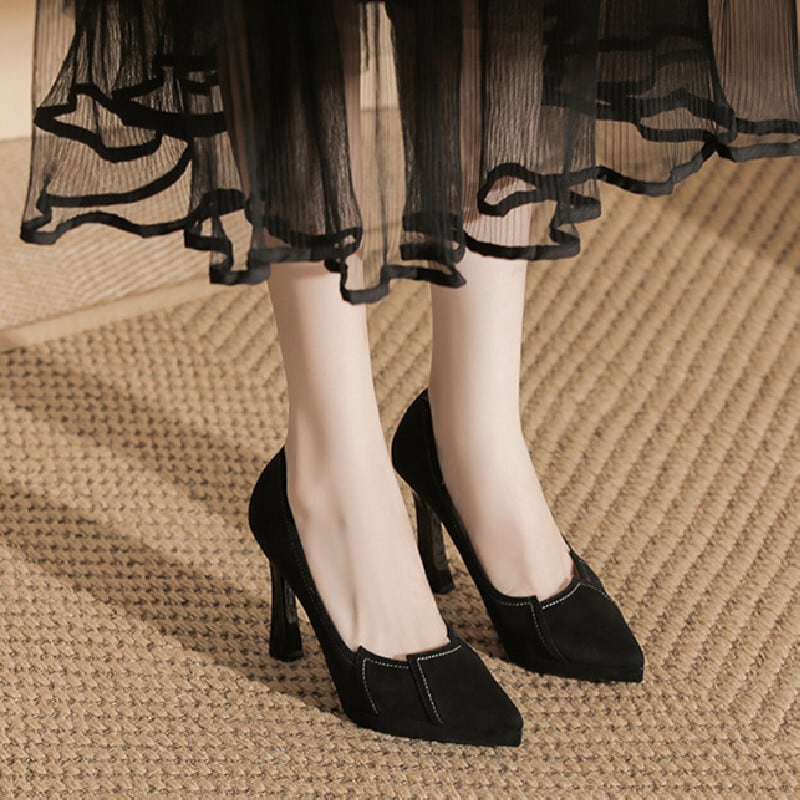 シューズ パンプス 2色展開 シンプル 通勤 グレーブルー ブラック 10CM
