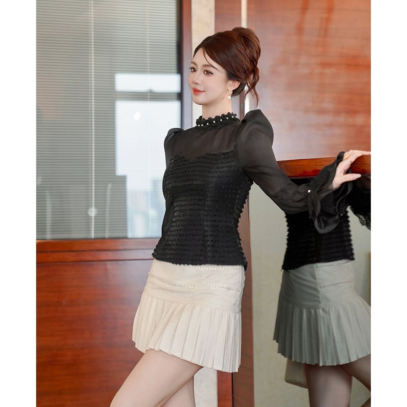 【夕暮薔薇シリーズ】トップス スピーカースリーブ デザイン感 長袖 ブラック S M L XL
