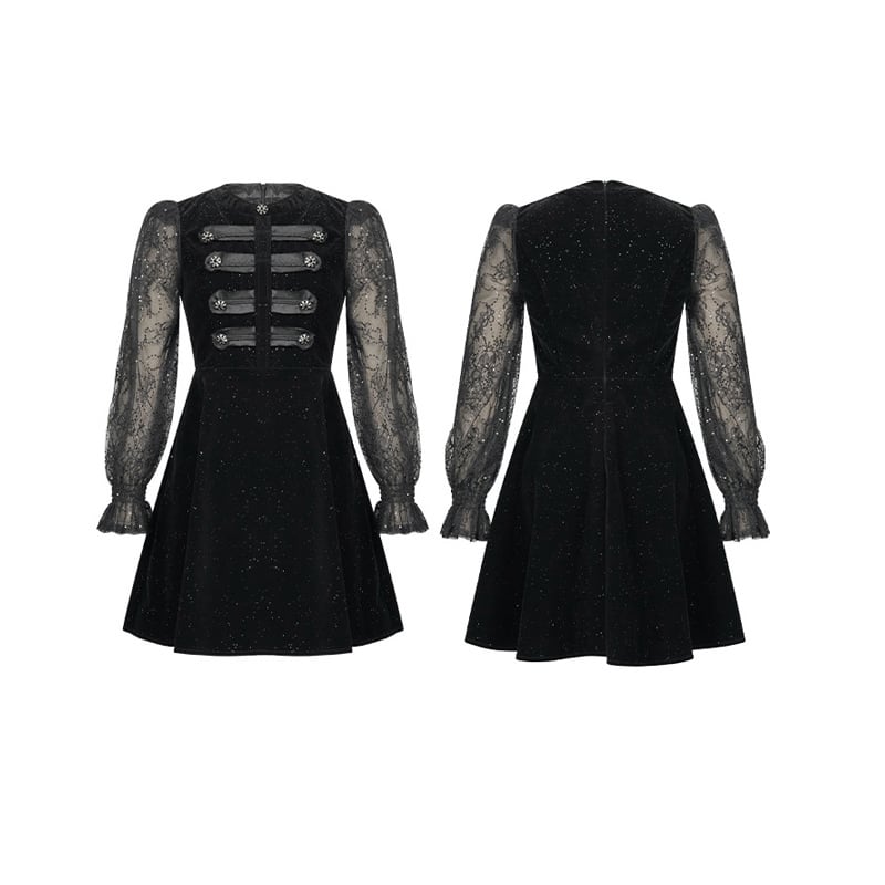 【夕暮薔薇シリーズ】ワンピース ベルベット スパンコール Aライン ブラック S M L XL