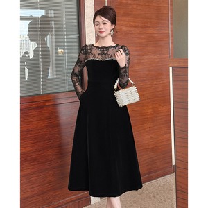【夕暮薔薇シリーズ】ワンピース ベルベット 綺麗め レース ブラック S M L XL