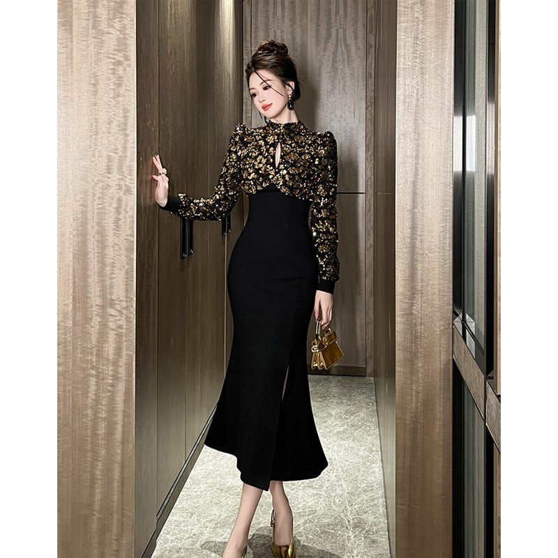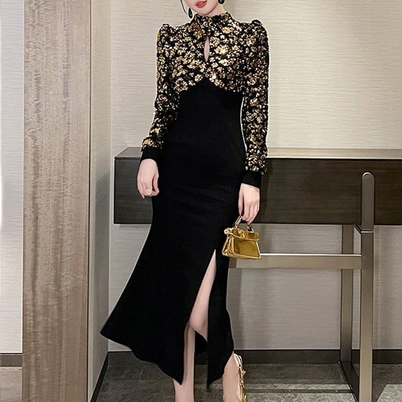 【夕暮薔薇シリーズ】ワンピース スパンコール 目を奪われる スリット S M L XL