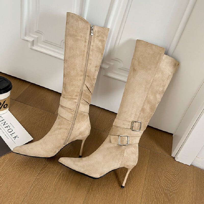 シューズ ブーツ ロングブーツ 細ピール スエード ダークベージュ 8CM