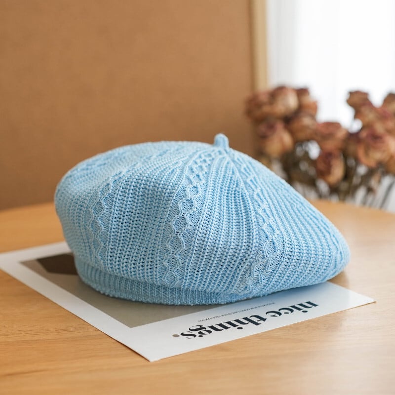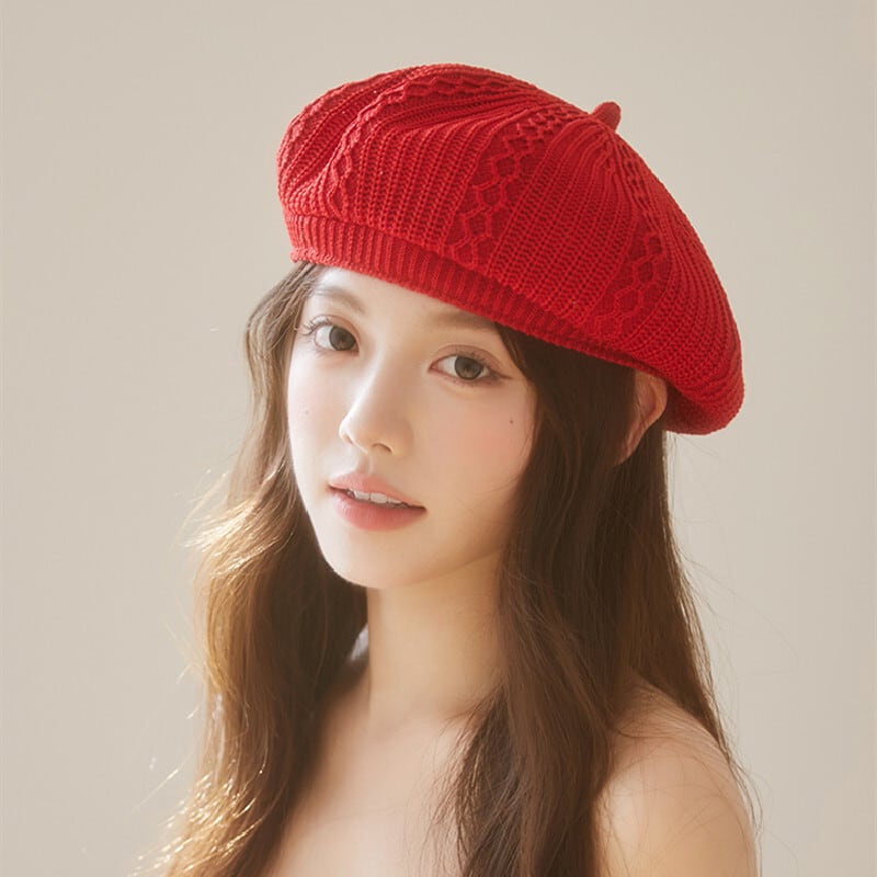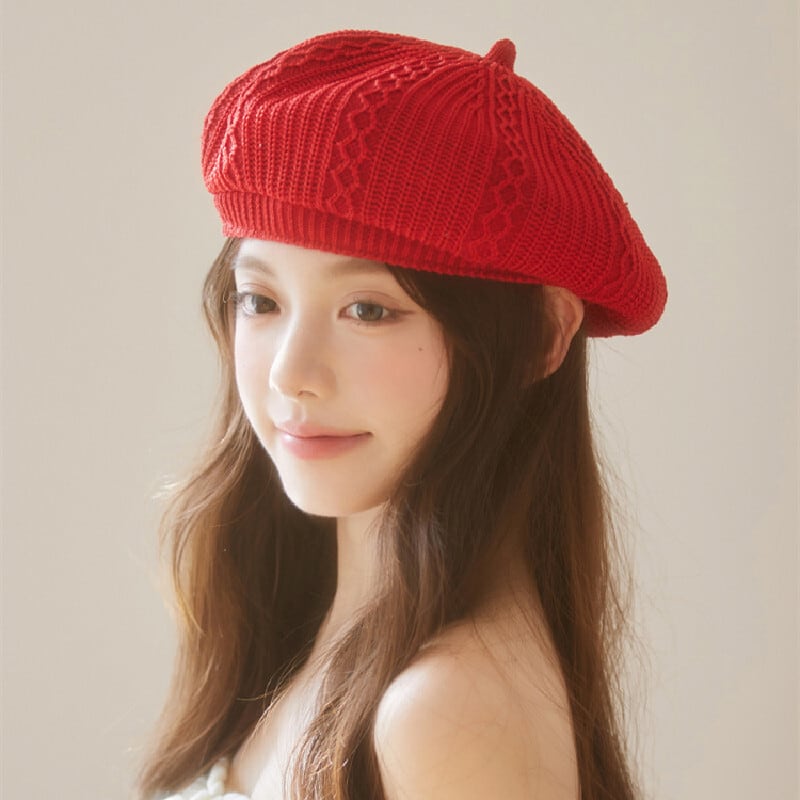 帽子 4色展開 ニットベレー 無地 ベレー帽 レッド ブラック ブルー ライトブラウン