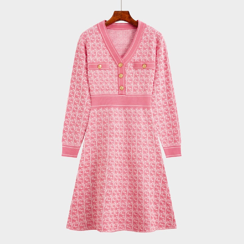 ワンピース Vネック Aライン 配色 おしゃれ ピンク S M L XL