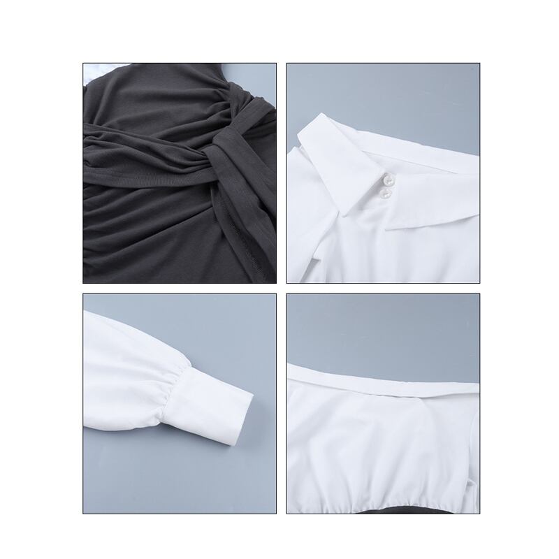 ワンピース 配色 オフショルダー ランタンスリーブ デザイン感 S M L
