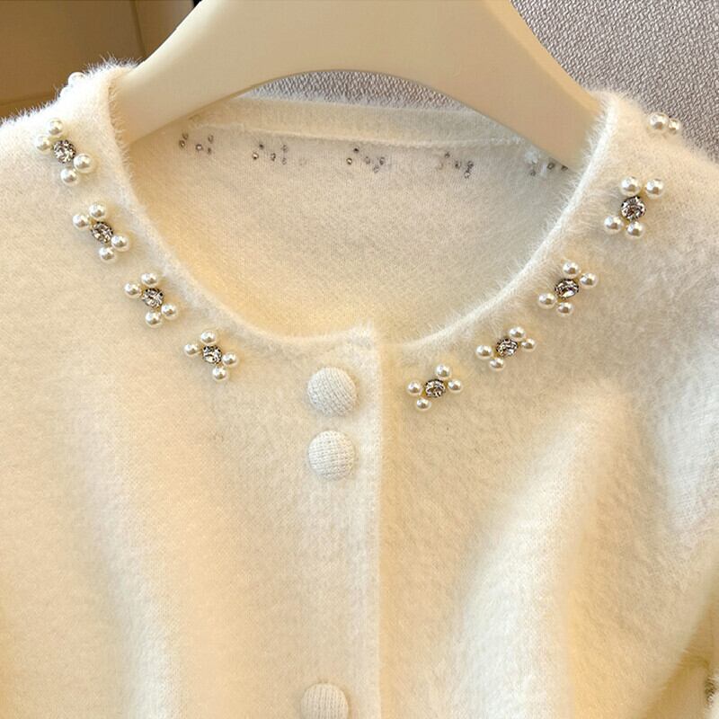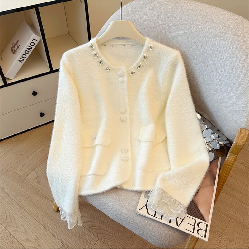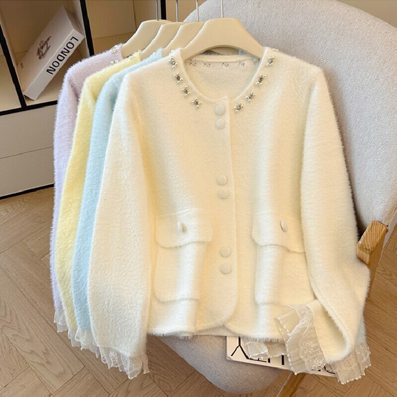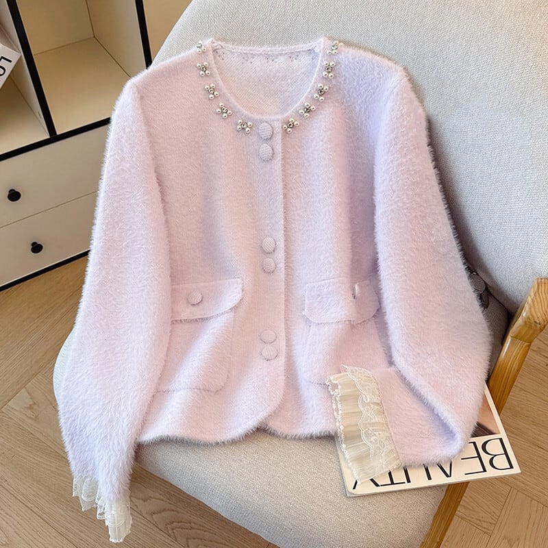 4colors トップス セーター ミンク風 シングルブレスト ラインストーン