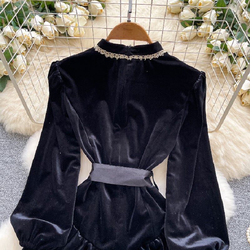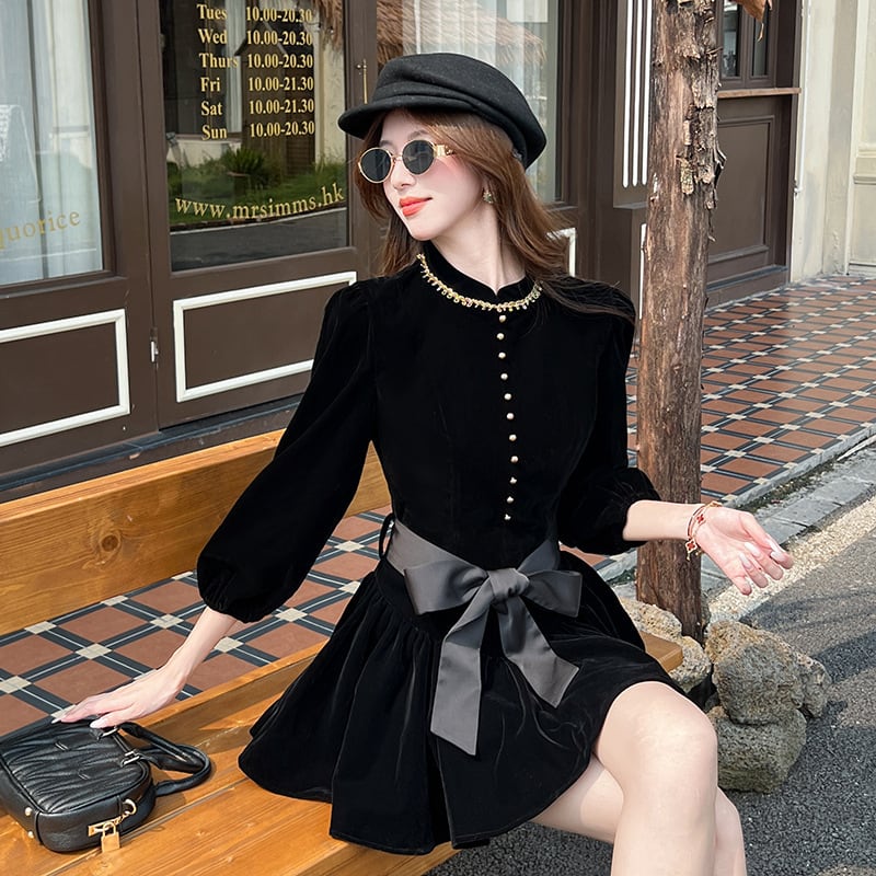 【CHERRYシリーズ】ベルベット Aライン ブラック ワンピース S M L XL