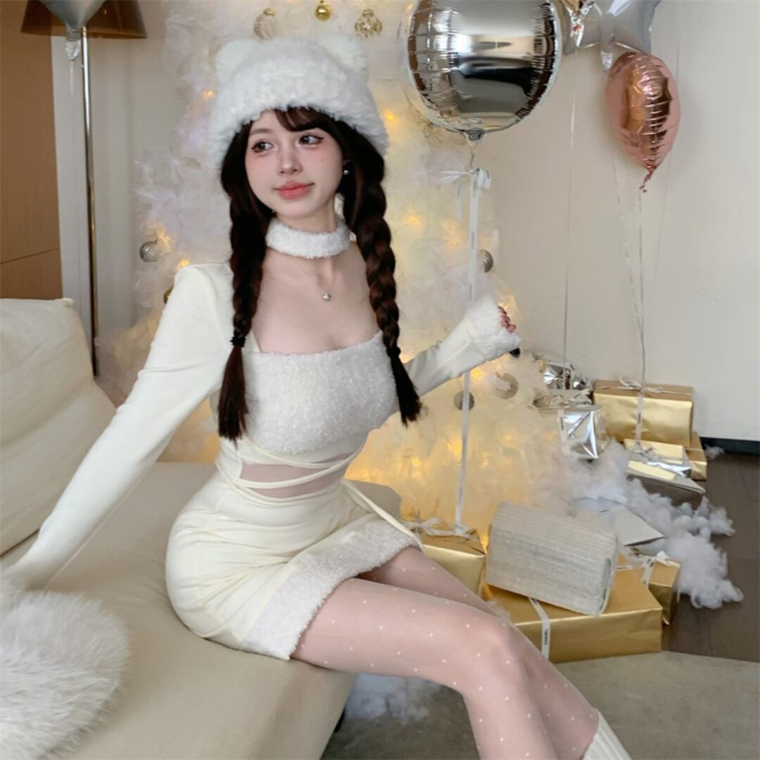 クリスマス♪ 可愛い 切り替え タイト ツインセット ベージュ ワンピース