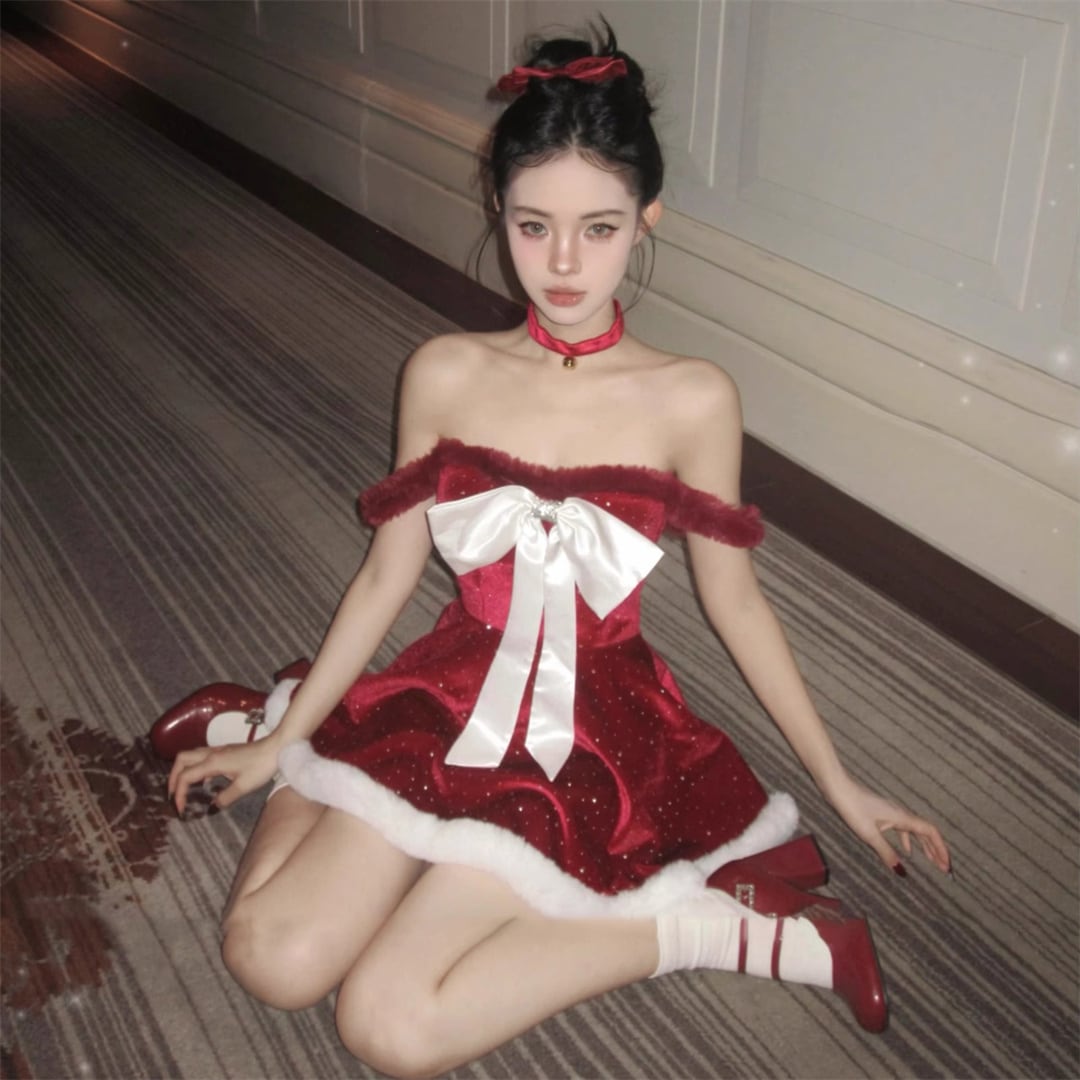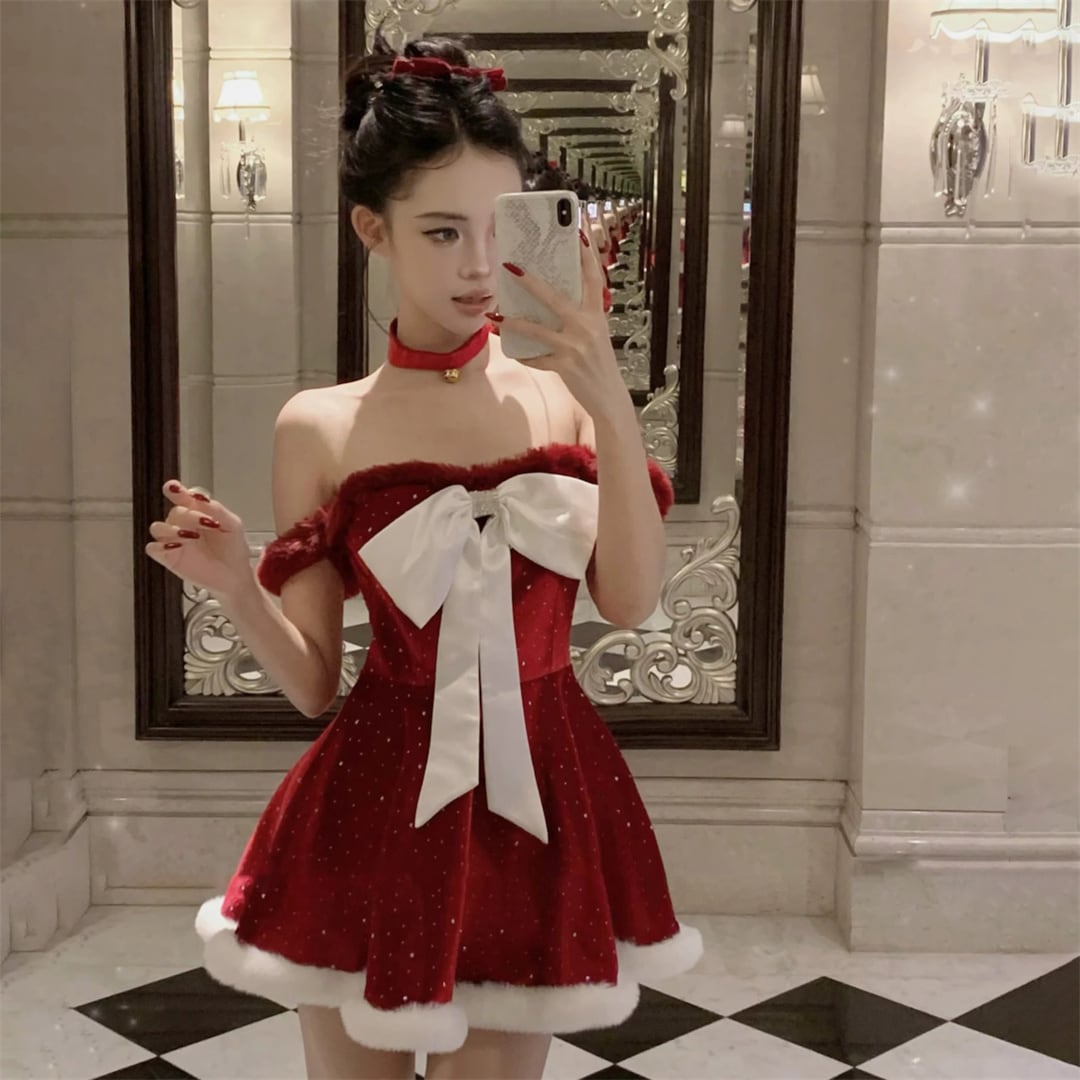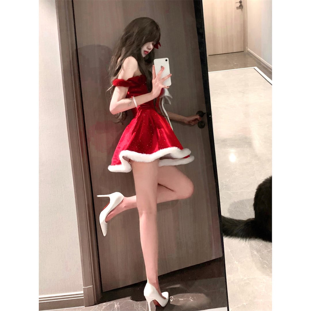 クリスマス♪ 4点セット パーティー プリンセス キラキラ オフショルダー ワンピース