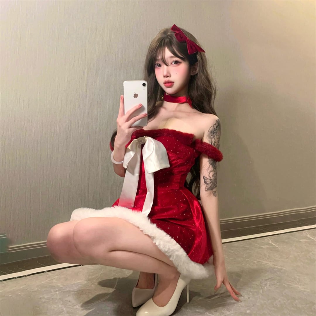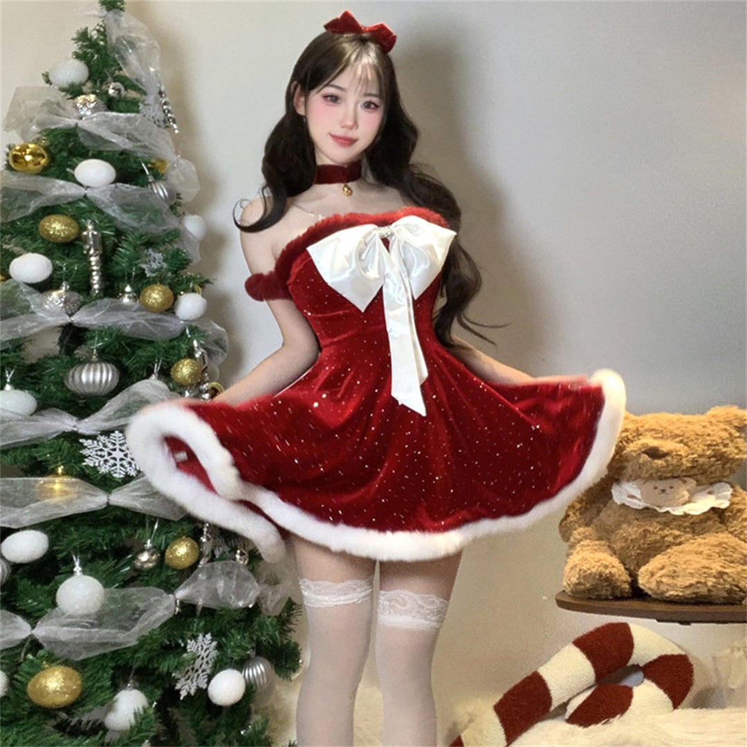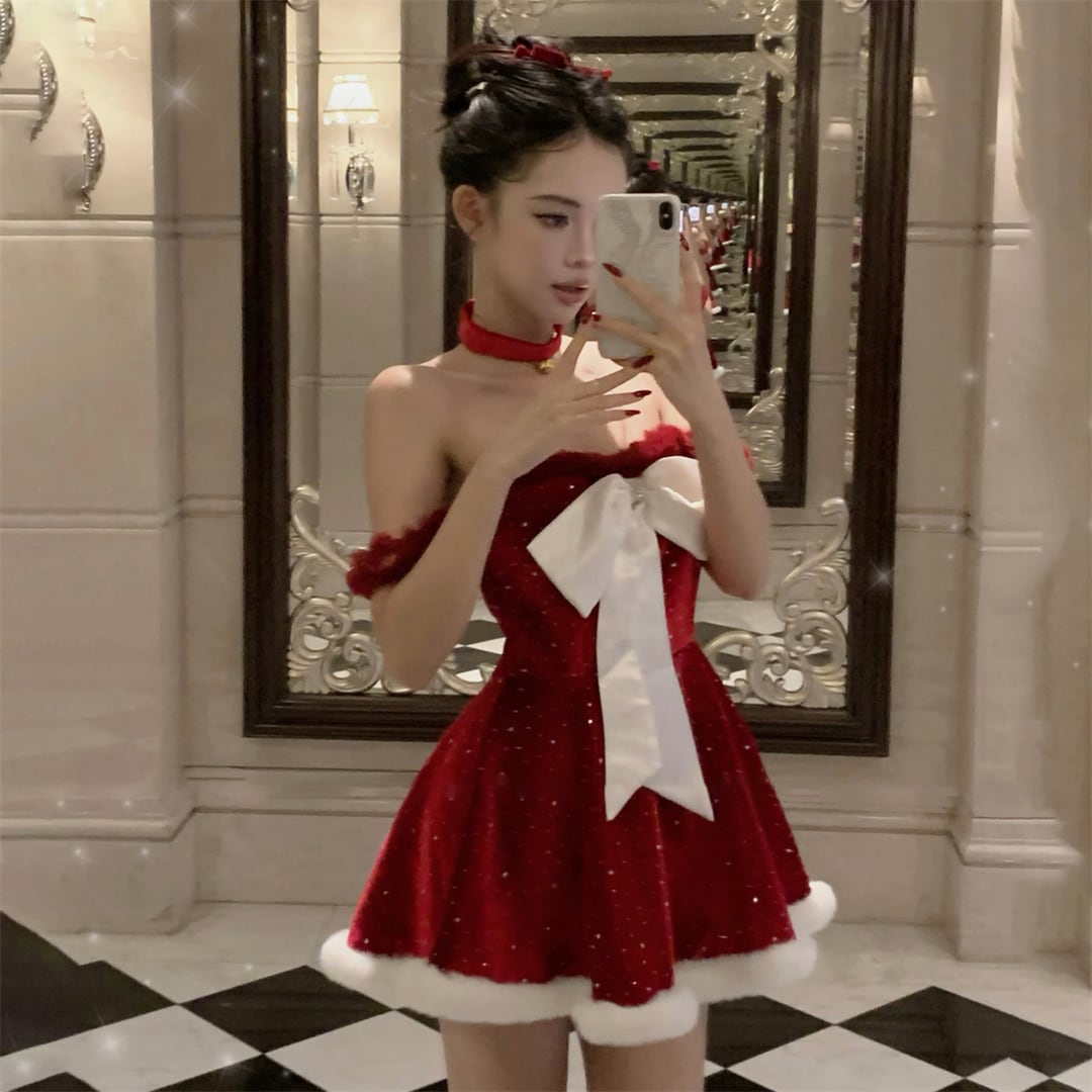 クリスマス♪ 4点セット パーティー プリンセス キラキラ オフショルダー ワンピース