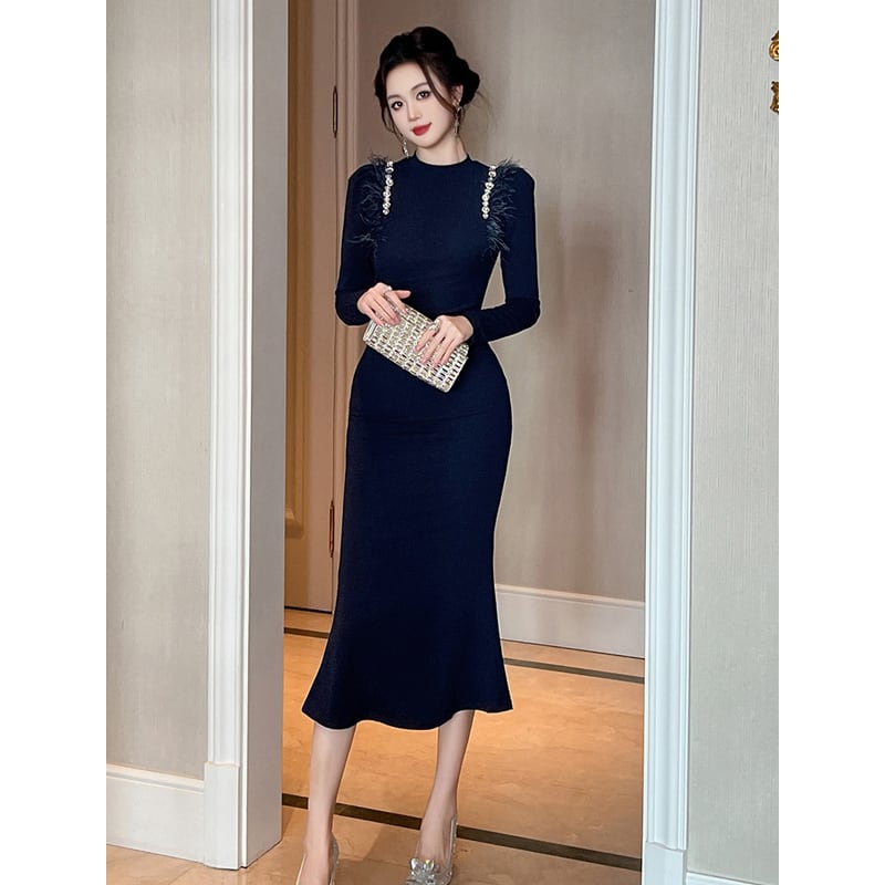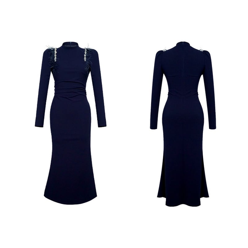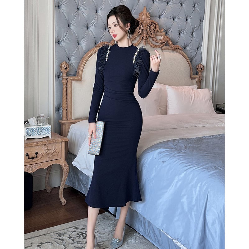 【夕暮薔薇シリーズ】ワンピース デザイン感 長袖 タイト 細見え S M L XL