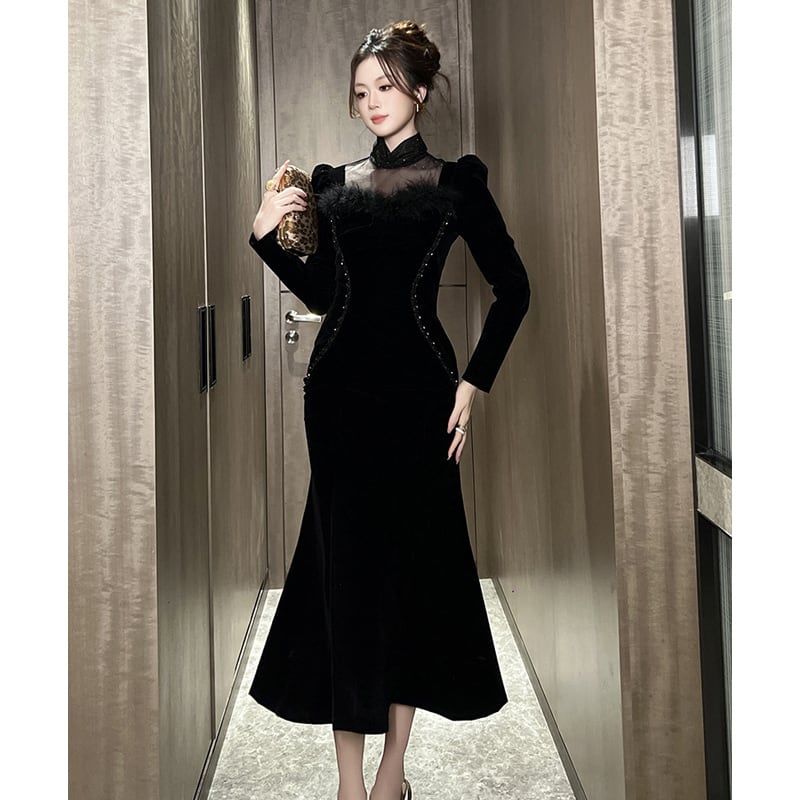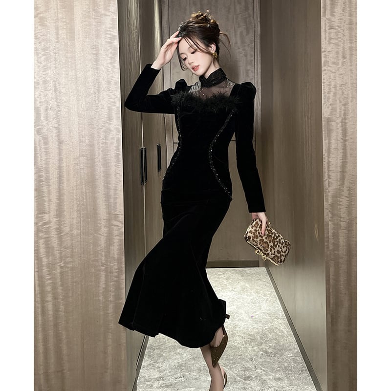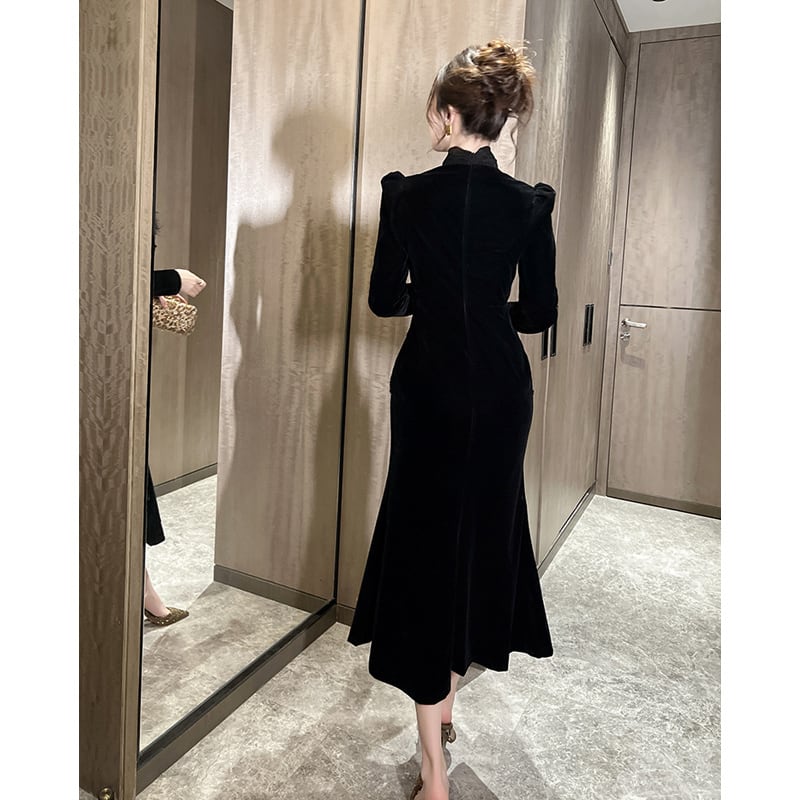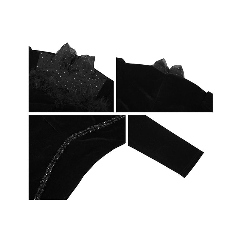 【夕暮薔薇シリーズ】ワンピース ベルベット レトロ メッシュ ブラック S M L