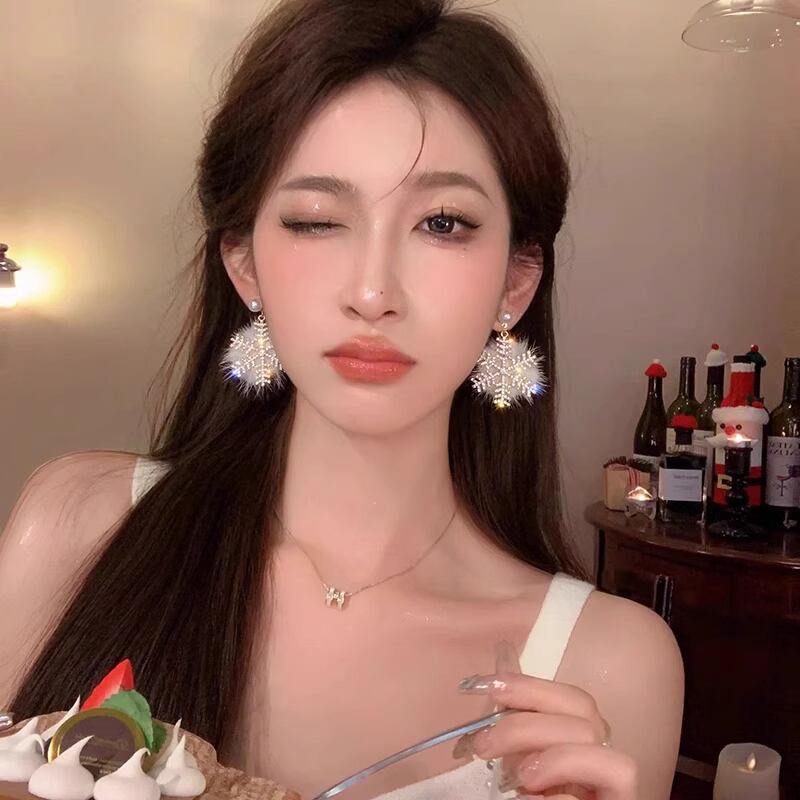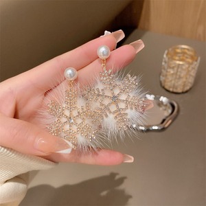 ★クリスマス 耳飾り★ ふわふわ 雪 キラキラ 輝く ピアス スノーフレーク