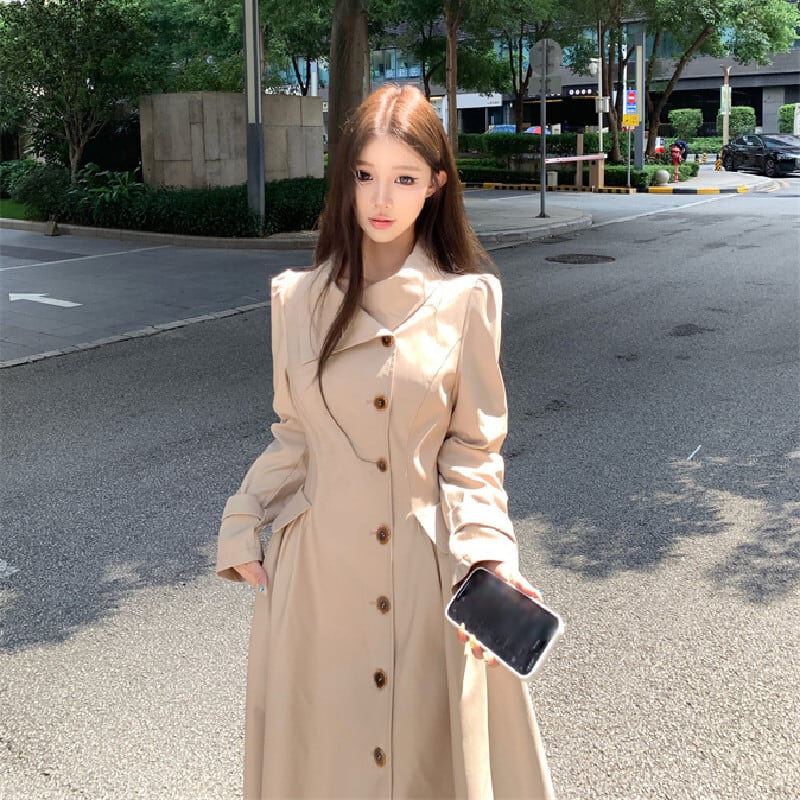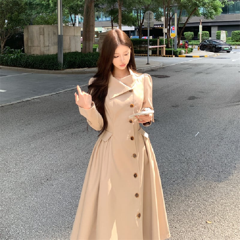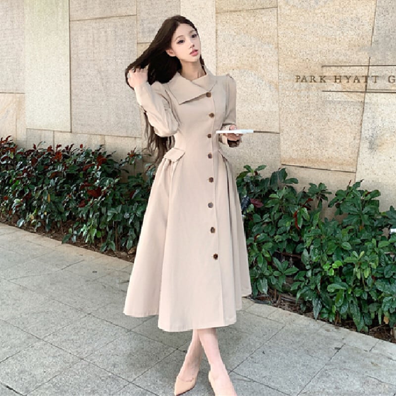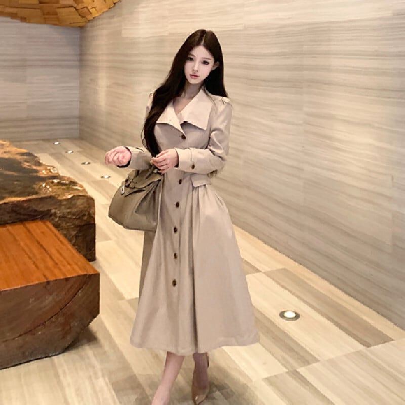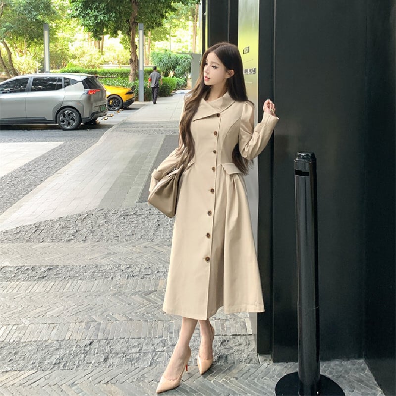 トレンチ風ワンピース 大人カジュアル すっきり ダークベージュ S M L