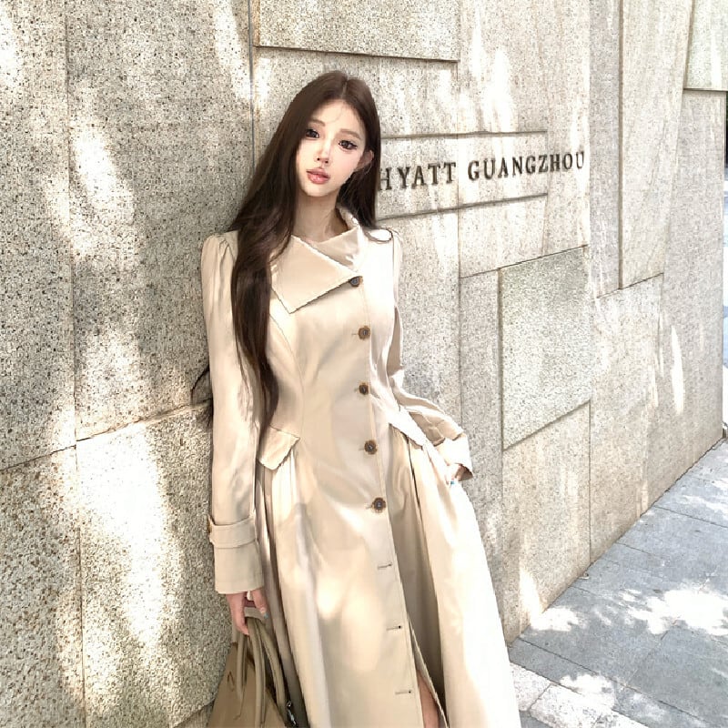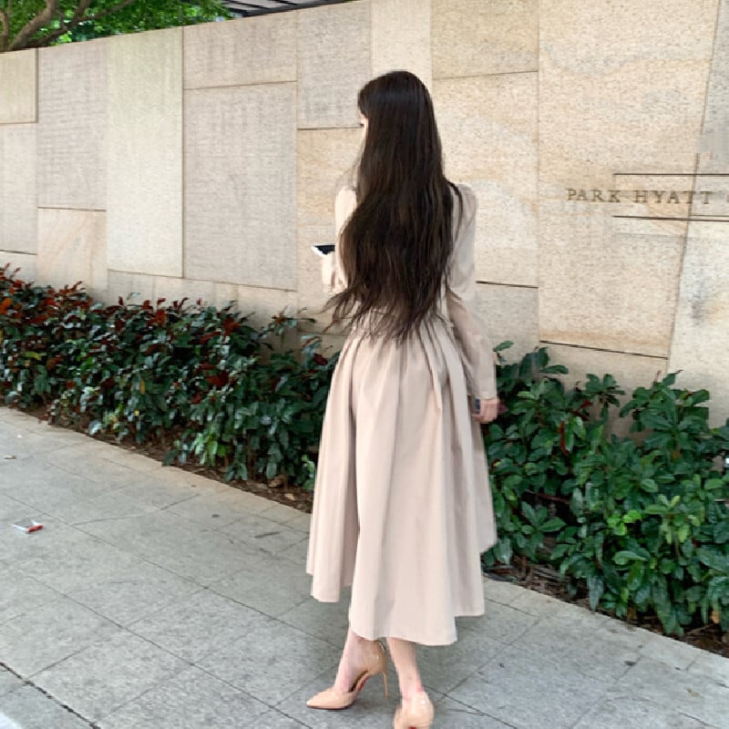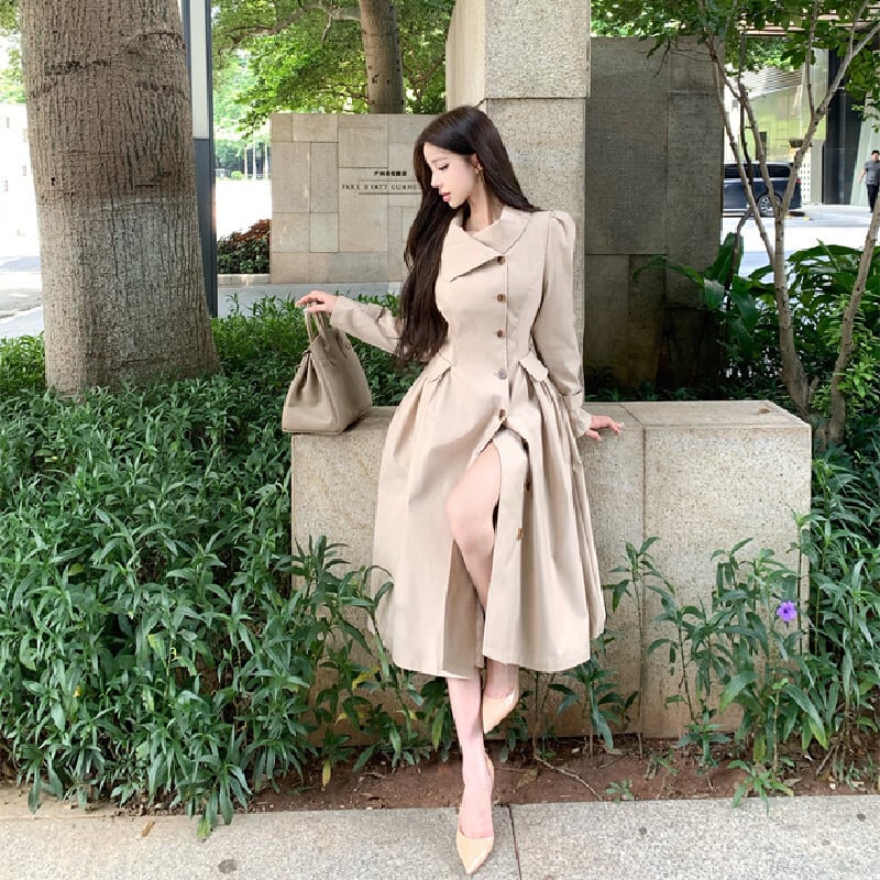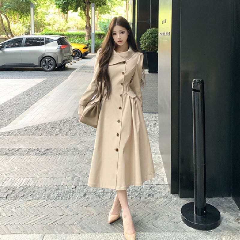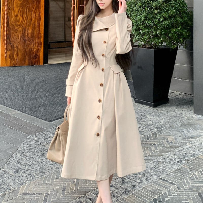トレンチ風ワンピース 大人カジュアル すっきり ダークベージュ S M L