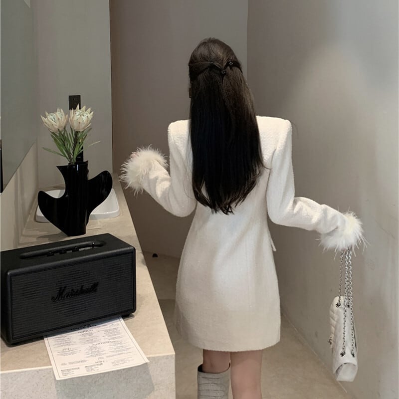 アウター ジャケット 袖口ファー付き フワフワ 上品 ホワイト ブラック