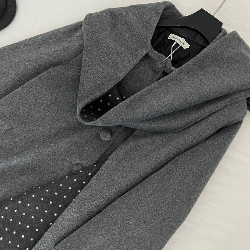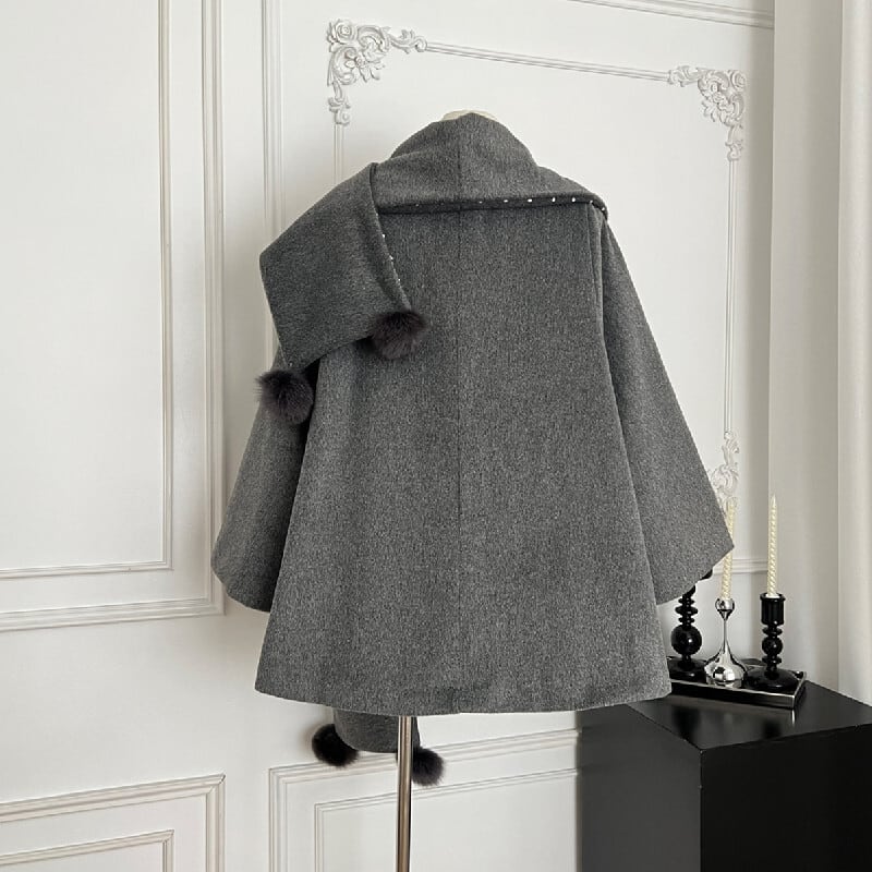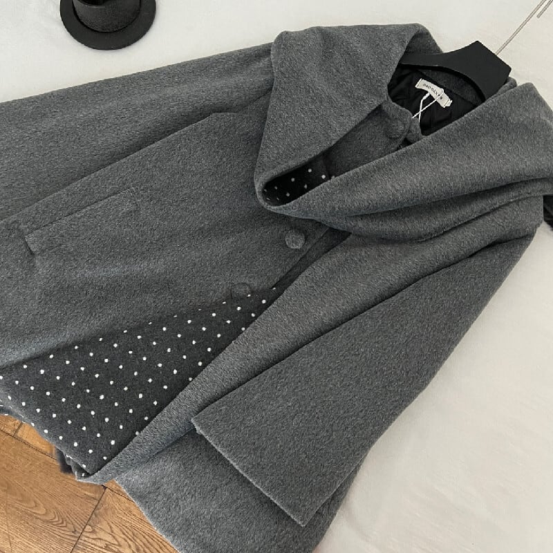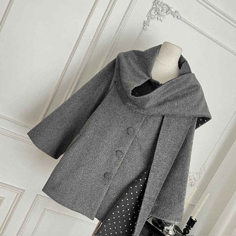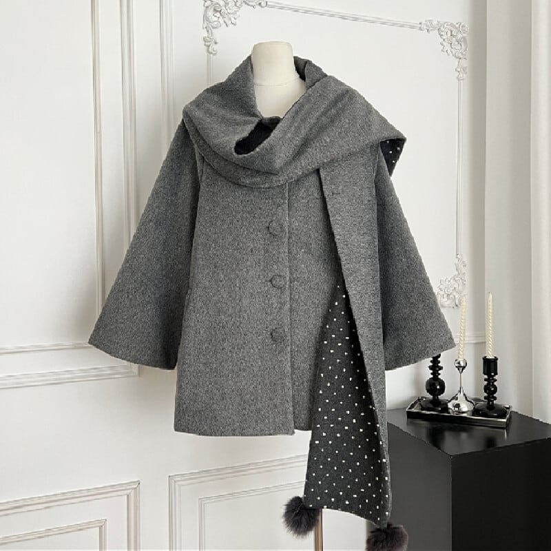 ショール風コート マフラー一体型 ドット柄 デザイン感 グレー S M