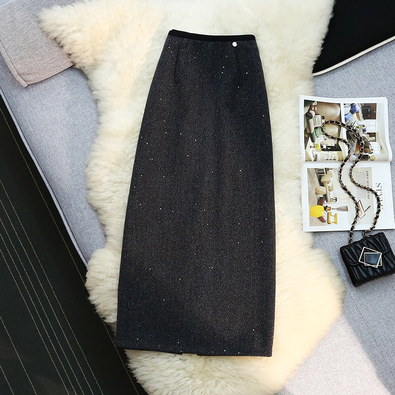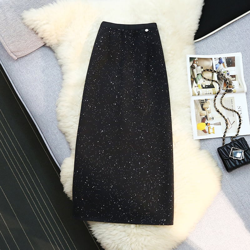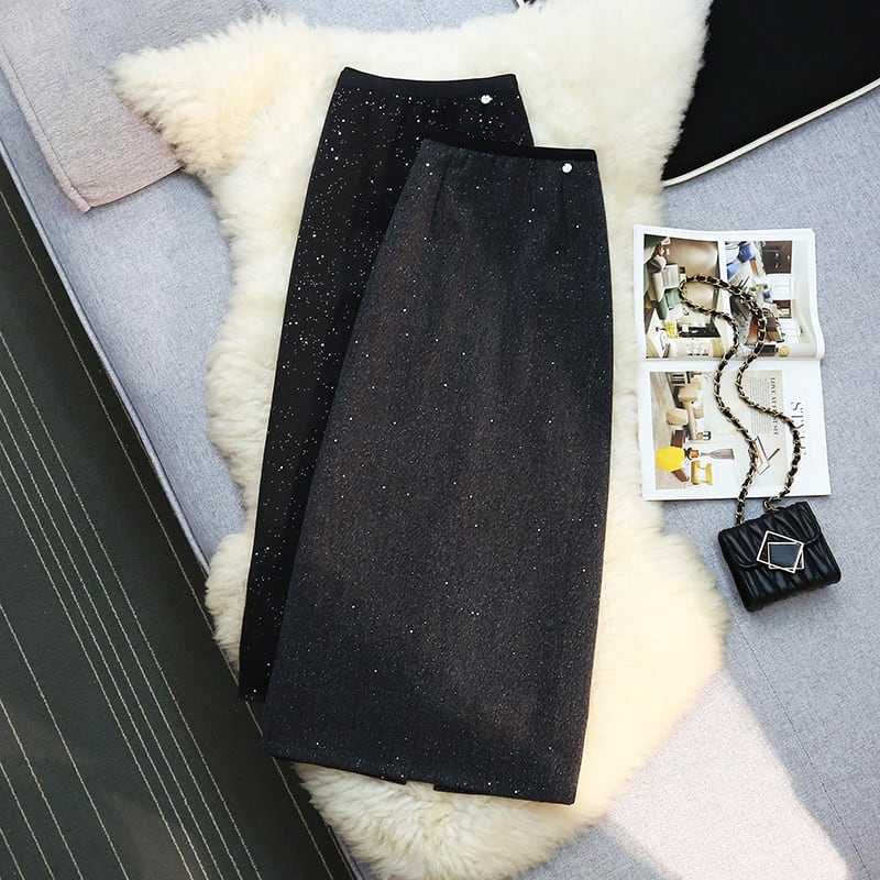 ボトムス スカート スパンコール バックスリット ダークグレー ブラック S M L XL