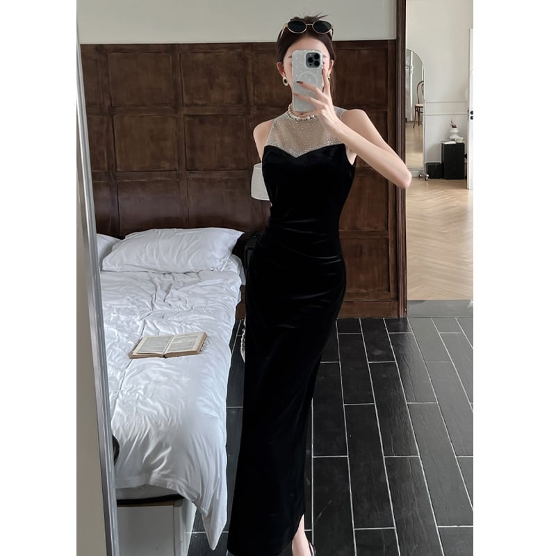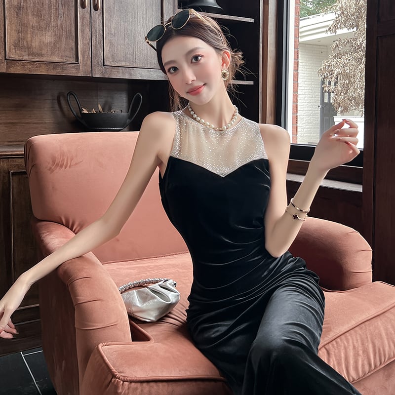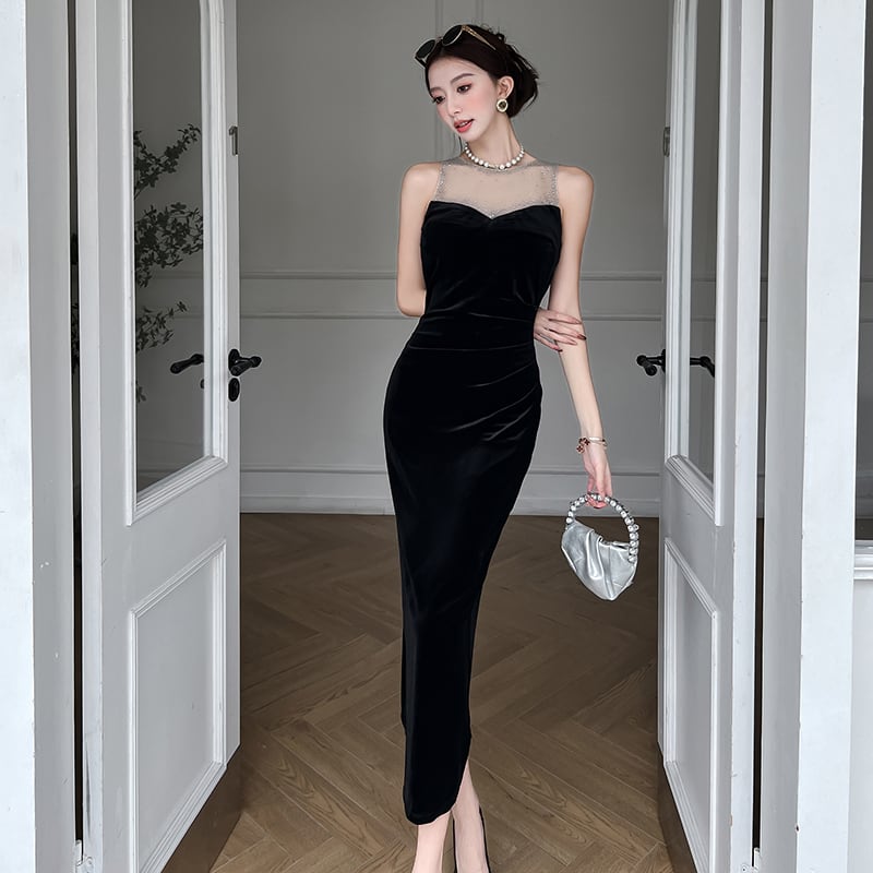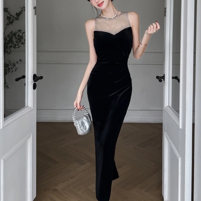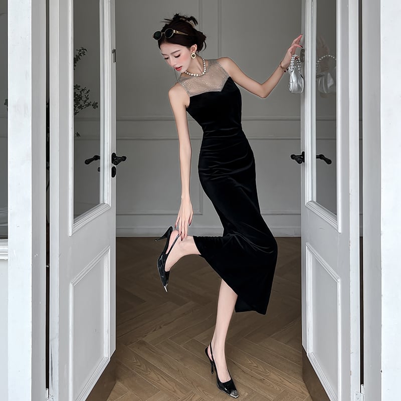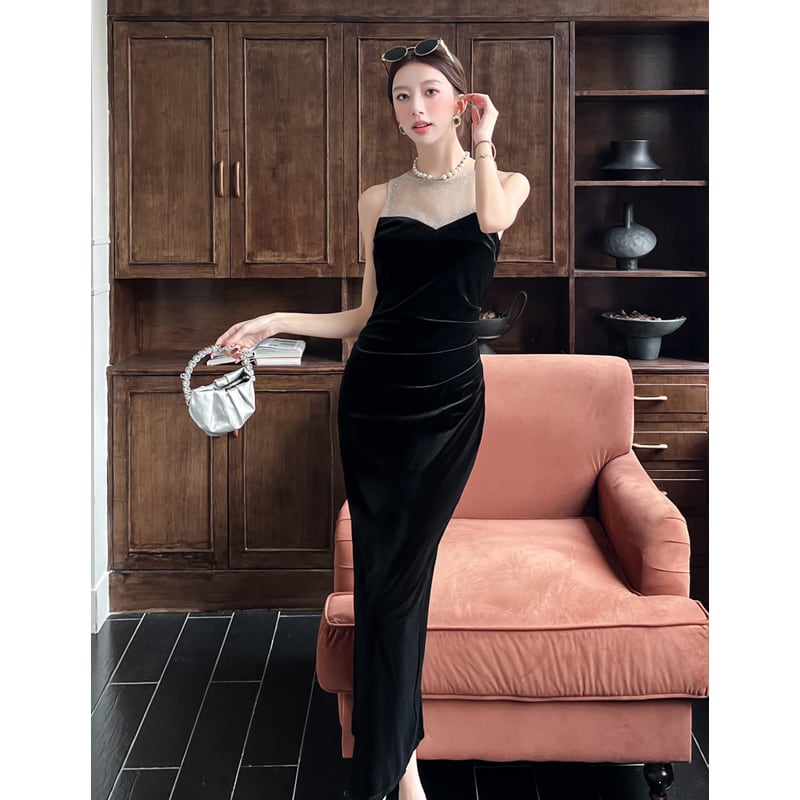 【CHERRYシリーズ】ワンピース ベルベット 飲み会 ブラック S M L XL