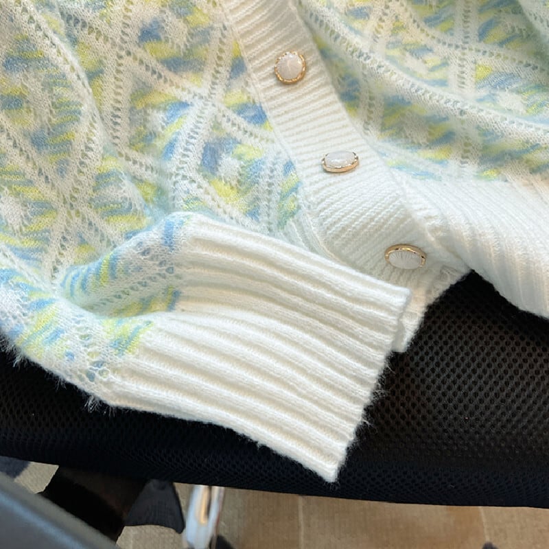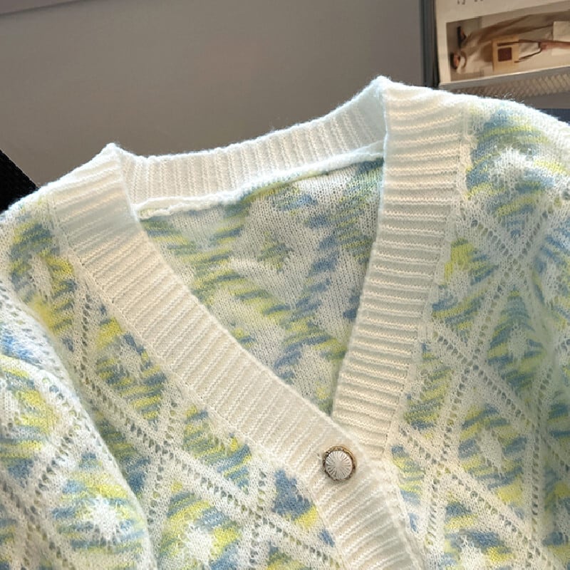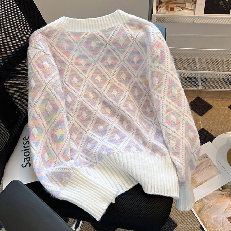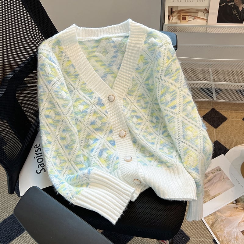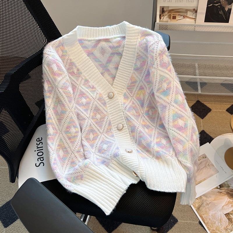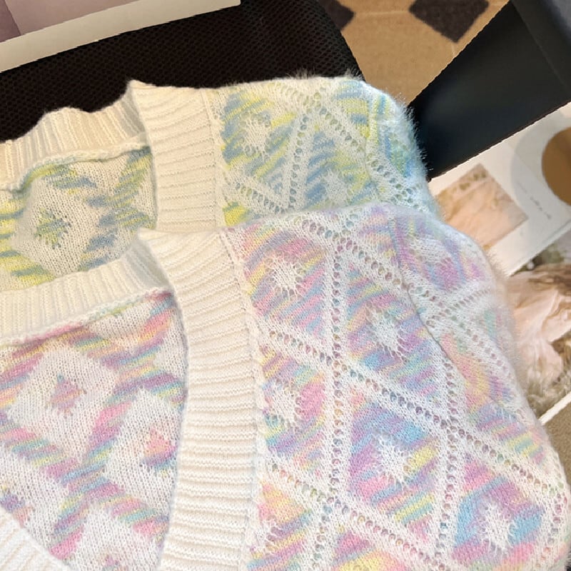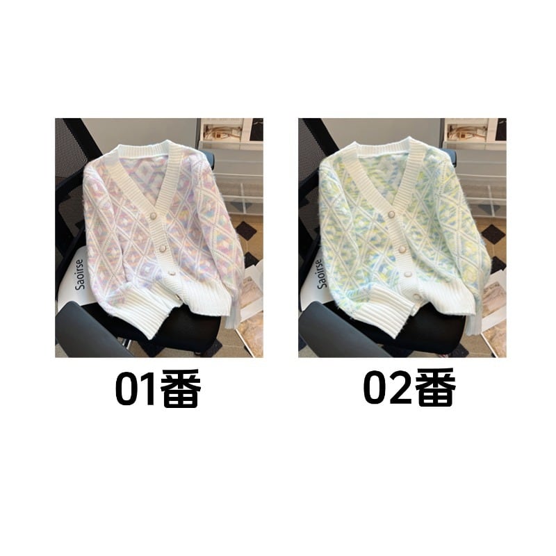 トップス セーター Vネック カーディガン ダイヤモンドパターン カラフル