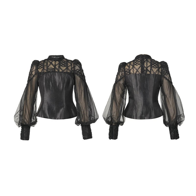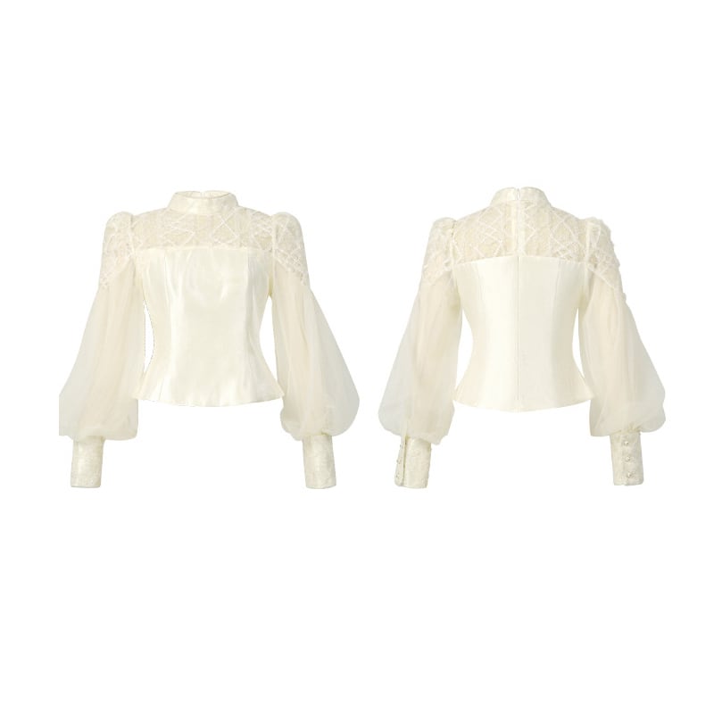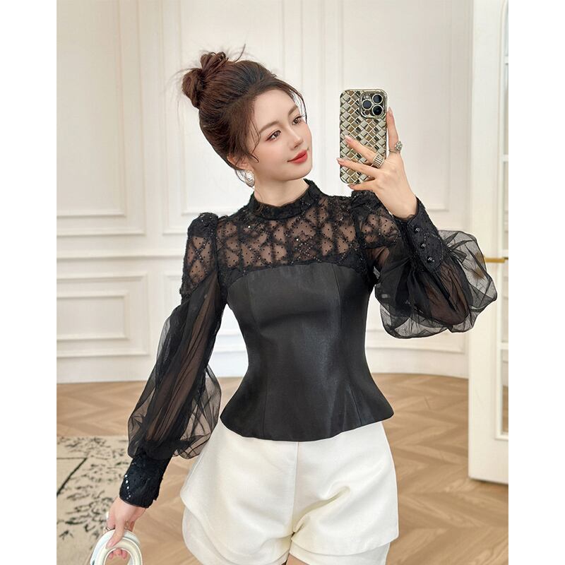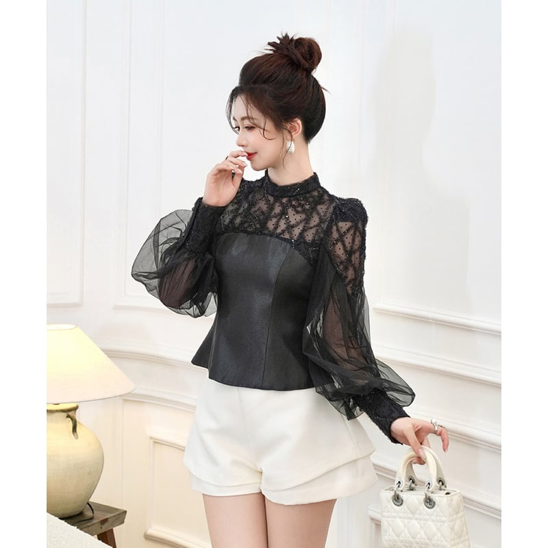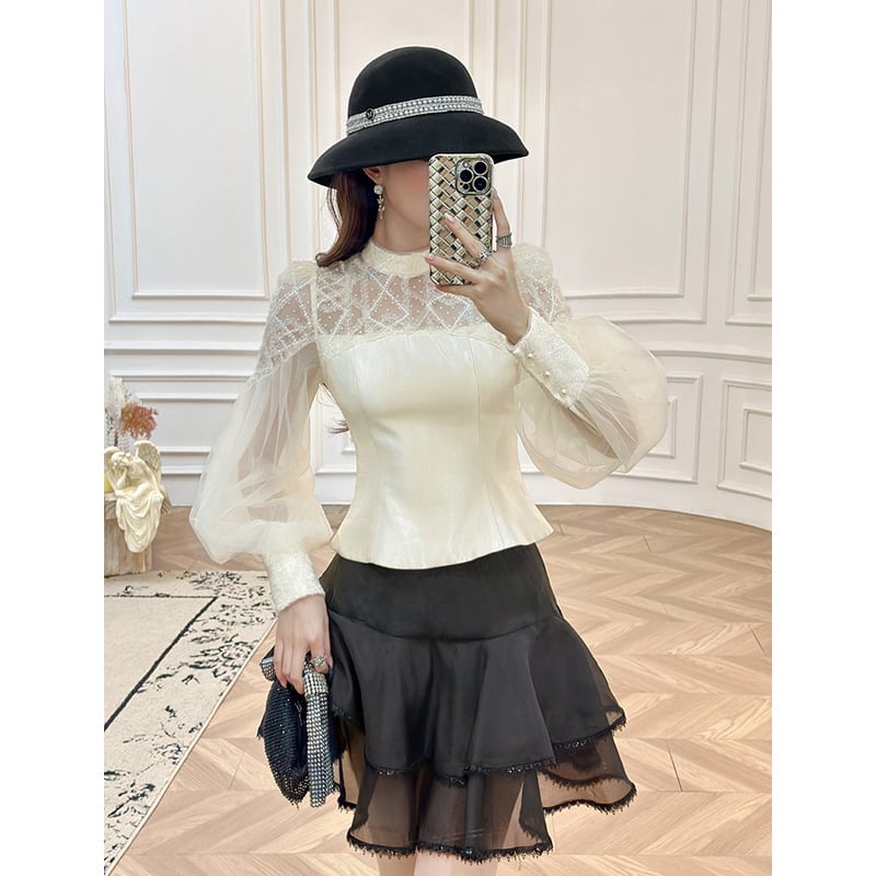 【夕暮薔薇シリーズ】2色展開 ランタンスリーブ スパンコール フレンチ風 トップス