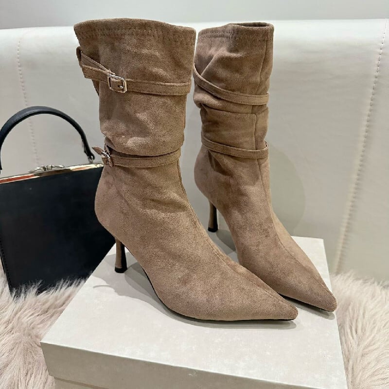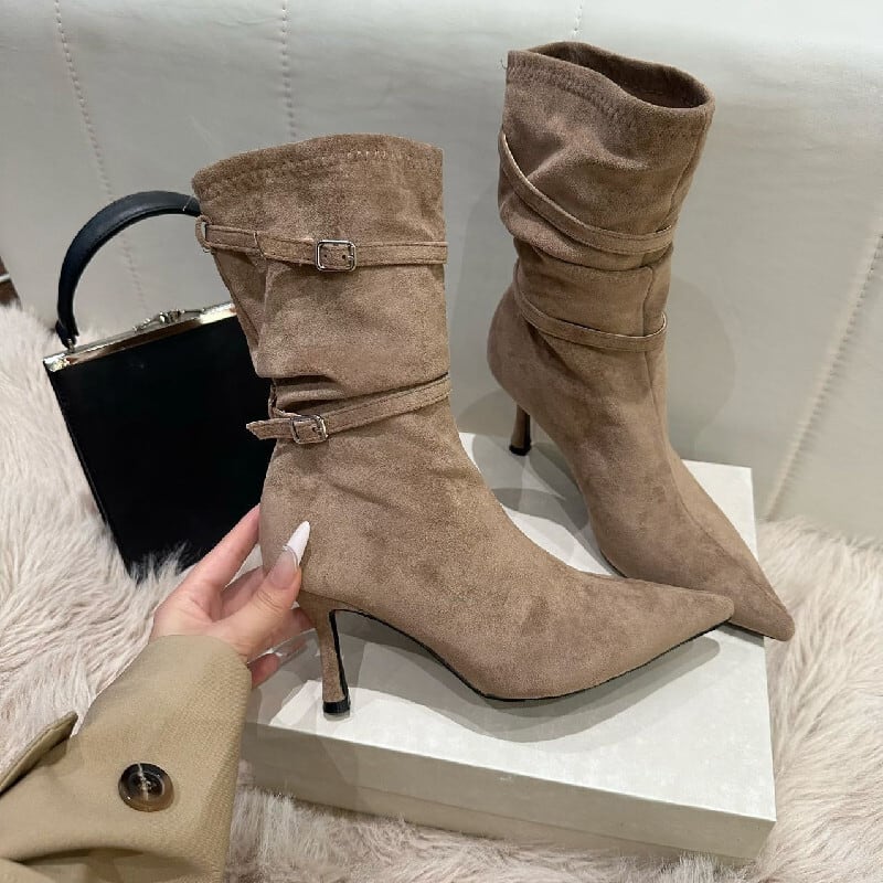 ストレッチ シュークリームブーツ ショートブーツ ブラック ライトブラウン 8CM