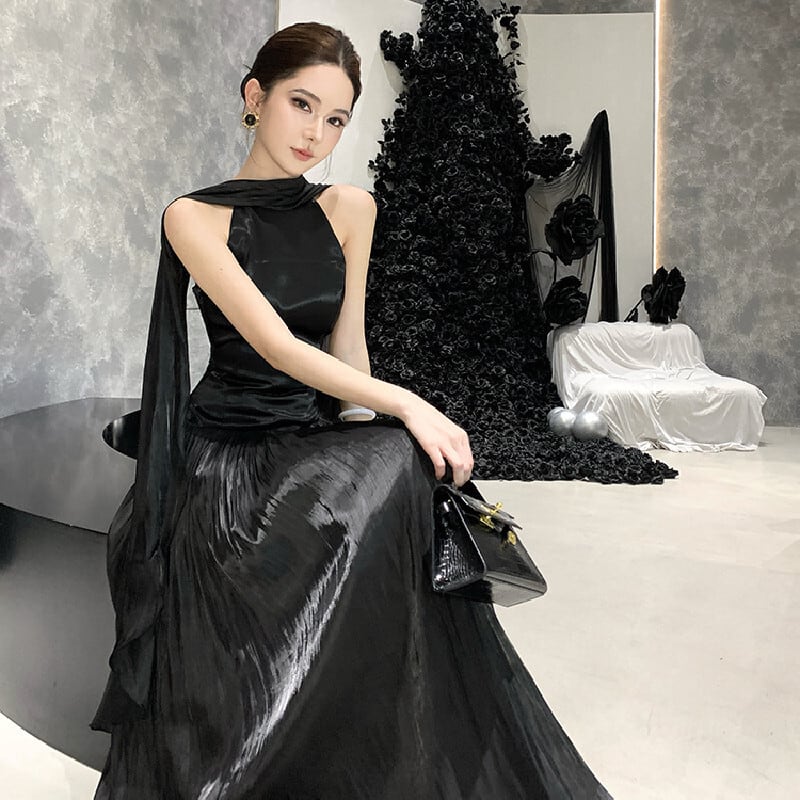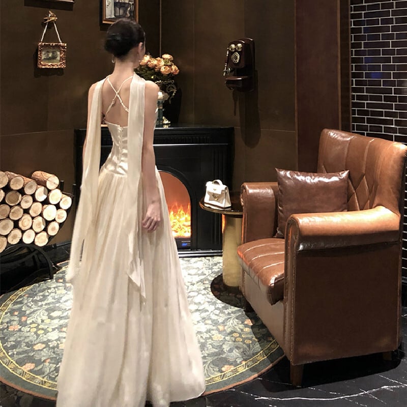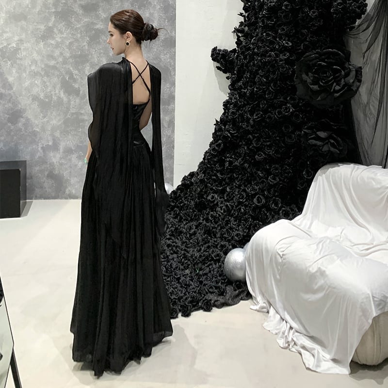 バックレス パーティードレス 女っぽさが漂う ベージュ ブラック