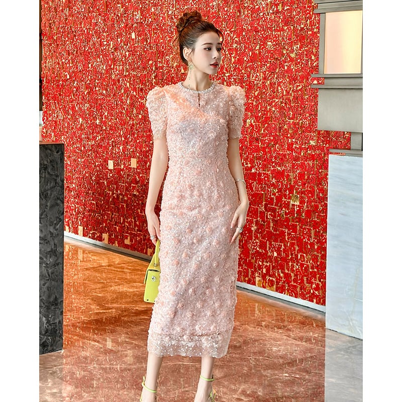 【夕暮薔薇シリーズ】ワンピース スパンコール パーティー 花びら S M L