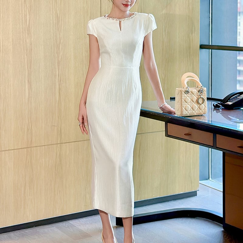 【夕暮薔薇シリーズ】ワンピース エレガント ボディシェイプ ベージュ M L XL